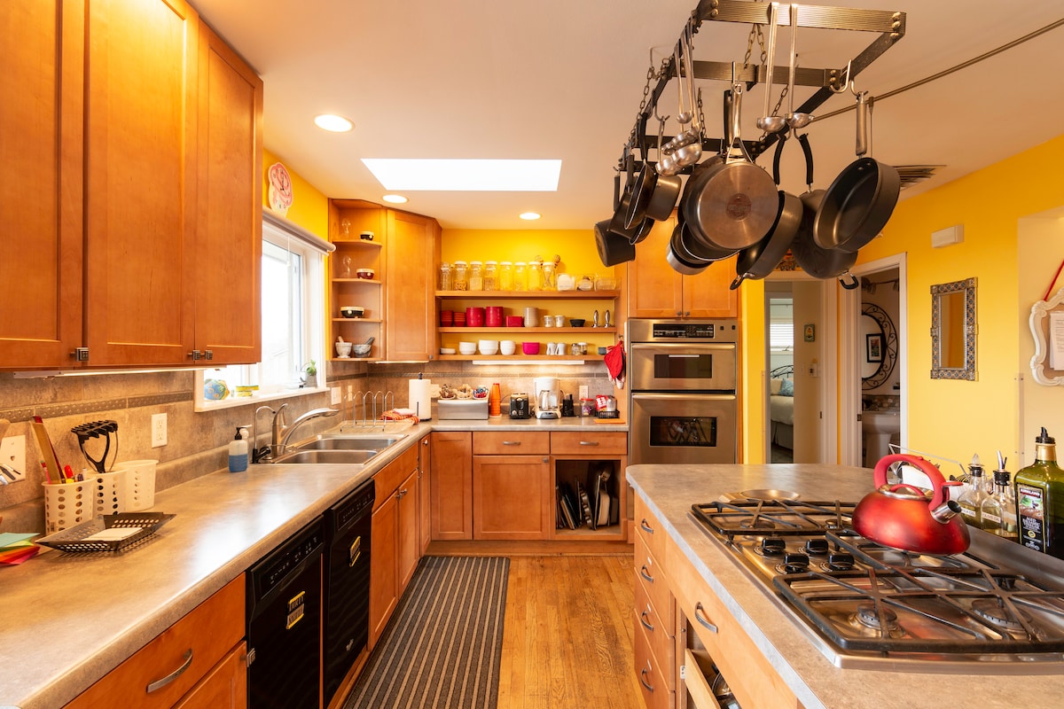 Smještaj ispunjen svjetlošću s otvorenim tlocrtom, profesionalnom kuhinjom, ostrvom od 2,5 metra i udobnom dnevnom sobom. Uživajte u pogledu na planine ispred i privatnom vrtu pozadi. Opustite se na predivnoj terasi sa večernjim pogledom na gradska svjetla. Bezbjedna gradska četvrt u blizini prodavnica i restorana, biciklističkih i pješačkih staza. Lokacija na prednjem putu paralelnom sa Brodvejem omogućava jednostavan pristup: 10 minuta vožnje do pješačkih staza, C.U. i centra grada. Najpogodnija lokacija u Bolderu za odlazak na skijališta.