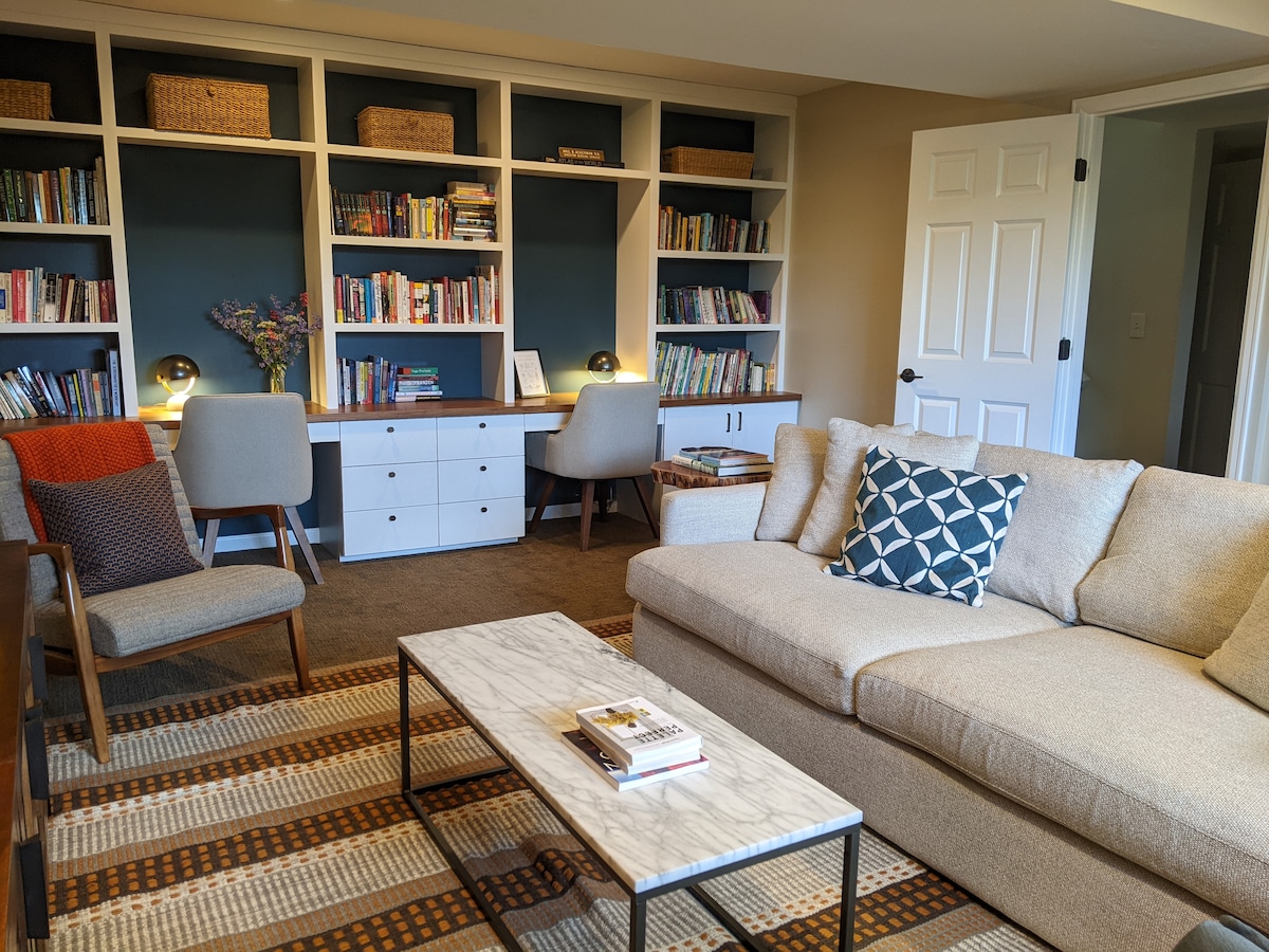 Nezavisni stan u porodičnoj kući. Svi sadržaji. Pogledajte posteljinu ispod drugih detalja. Savršeno za vikend, produženo poslovno putovanje, porodični odmor, bilo koja druga prilika. Nema kućnih ljubimaca, osim životinja za pomoć čoveku. Poseban ulaz u trijem, mnogo svjetla, grijanje i klima-uređaj, potpuno kupatilo, čajna kuhinja, frižider, posebna mašina za pranje/sušenje veša, veliki ormar, brzi Wi-Fi i žičani lan, 4K Roku TV, radni sto. Evropski domaćini su putovali u 50 okruga. Gosti iz bilo koje pozadine su dobrodošli!