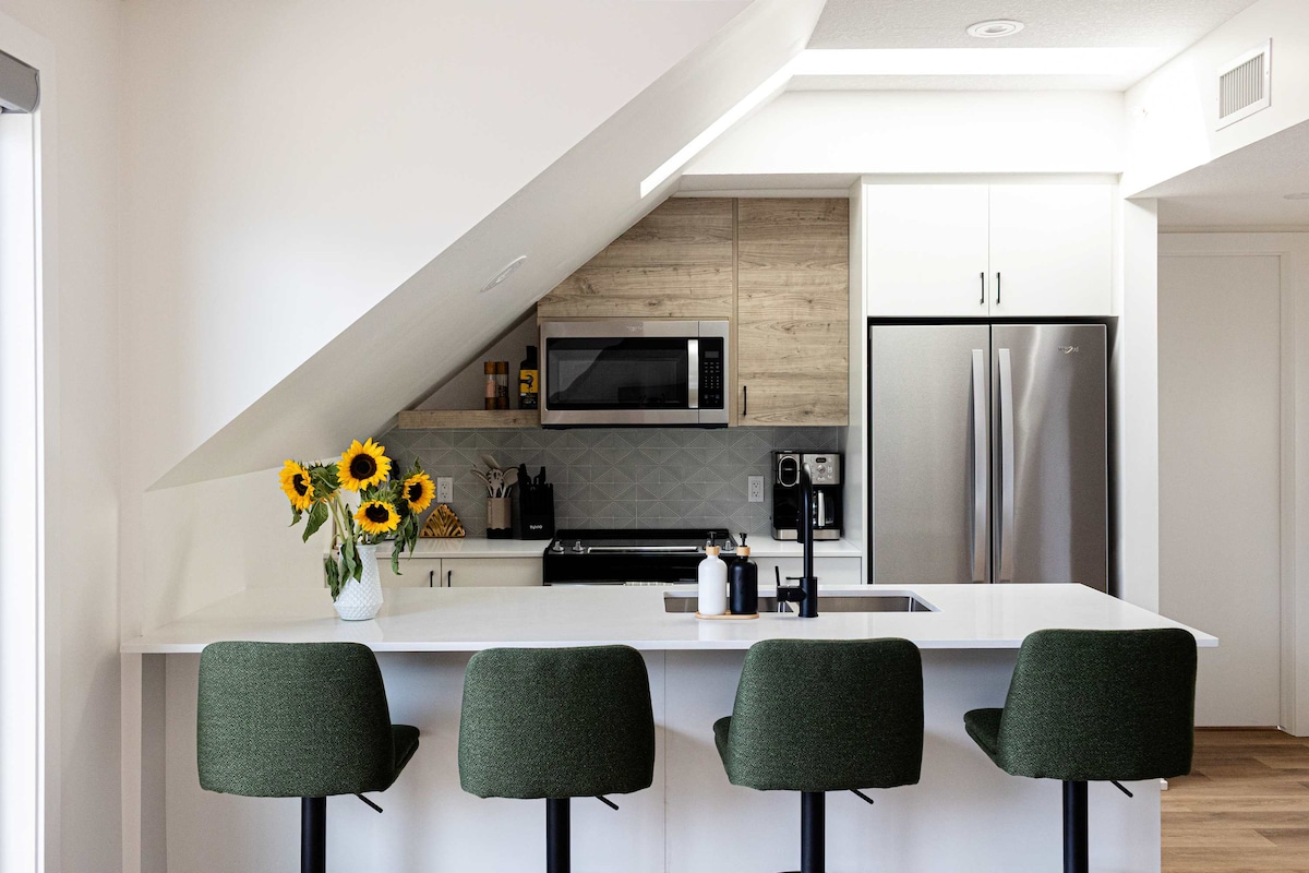 This newly constructed top-floor suite offers an exceptional living experience with breathtaking mountain views. Enjoy premium amenities like the communal rooftop hot tubs or the custom-built wet sauna. Host a BBQ and unwind on your two expansive private balconies. As night falls, gather around the fire table and marvel at the starry skies. Just a short drive from Banff, this property blends luxury and convenience for the ideal mountain getaway.