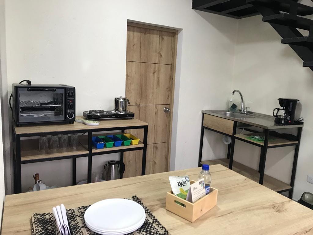 Studio apartman u kući sa privatnim kupatilom i kuhinjom, ima dva kreveta za jednu osobu, ormar, komodu sa ogledalom, radni sto sa stolicom, kablovsku i Wi-Fi, toplu tuš-kabinu, zamrzivač U blizini aerodroma El Dorado, sa lakim pristupom glavnim putevima. Porodična atmosfera, zajednička terasa. Parking za motocikle. Kućni ljubimci nisu dozvoljeni.