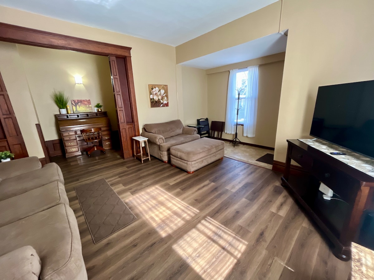 Enjoy the charming original woodwork of this ground-floor unit, centrally located in a quiet residential neighborhood, just steps from Central Park and near King’s Daughters Medical Center. Perfect for work trips, extended stays, or a comfortable home base while visiting the area. The home offers two full bedrooms with ample clothing storage and TVs, a step-in shower, free laundry, and an eat-in, fully stocked kitchen. There is also a designated workspace for those who need to catch up on work!