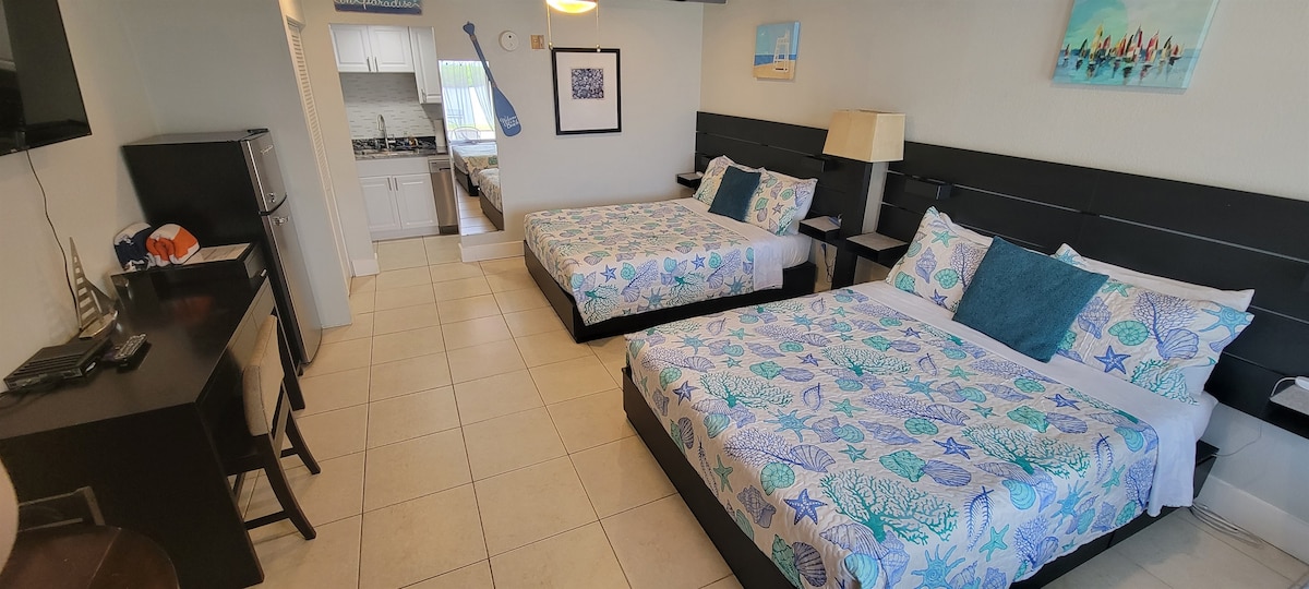 Ovaj smještaj je potpuno obnovljen i moderan! Uživajte u PREKRASNOM pogledu sa privatnog balkona od 6 metara sa pogledom na zaliv, bazen i đakuzi! Gledajte delfine svako jutro dok pijuckate kafu ili dok uživate u čaši vina uveče! Na 6 minuta vožnje do plaže Madeira i blizu svih sadržaja sa mnogo restorana u blizini, uključujući Doc Ford's odmah pored, i kupovina na 7 minuta. Mnogo toga za raditi; blizu pecanja, uključujući duboko more i džet-ski. 1 spavaća soba, za 4 osobe; udoban kauč na razvlačenje.