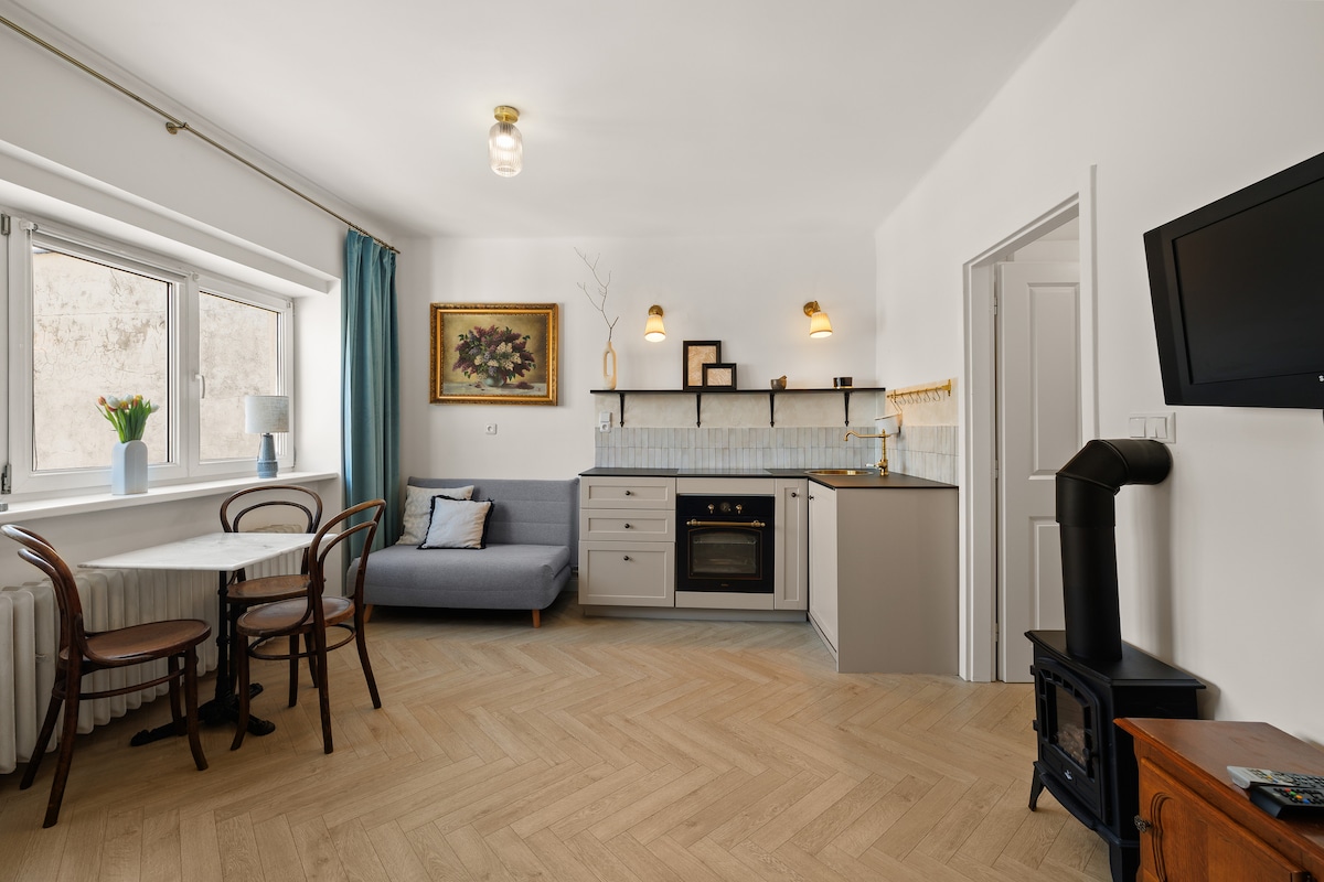 Stan sa jednom sobom je u neposrednoj blizini mnogih restorana, klubova i znamenitosti Bratislave (npr. glavni trg, istorijska opera, stara gradska kuća). Jednostavan pristup gradu sa obližnjih stanica javnog prevoza. Potpuno opremljena kuhinja sa priborom i osnovnim posuđem. Bračni krevet (širine 150-179 cm). Kauč na razvlačenje (udobno se može udobno smestiti jedna osoba). Kupatilo sa kadom. Obezbeđena je posteljina i peškiri.