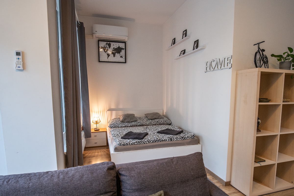 Zdravo :) Nudim vam da odsjednete u divnom studiju za nepušače (34 m2, bez balkona) u centru grada sa pogledom na rijeku Dunav - vaš dom u Bratislavi:) Odličan osjećaj odmora, posebno ljeti. 10 minuta hoda do istorijskog dijela grada. Kupovina, kafići i restorani na udaljenosti od 50 m. Cijenimo sve zainteresovane za našu ponudu, ali imajte na umu da nije dozvoljeno pušenje u objektu. Hvala :)