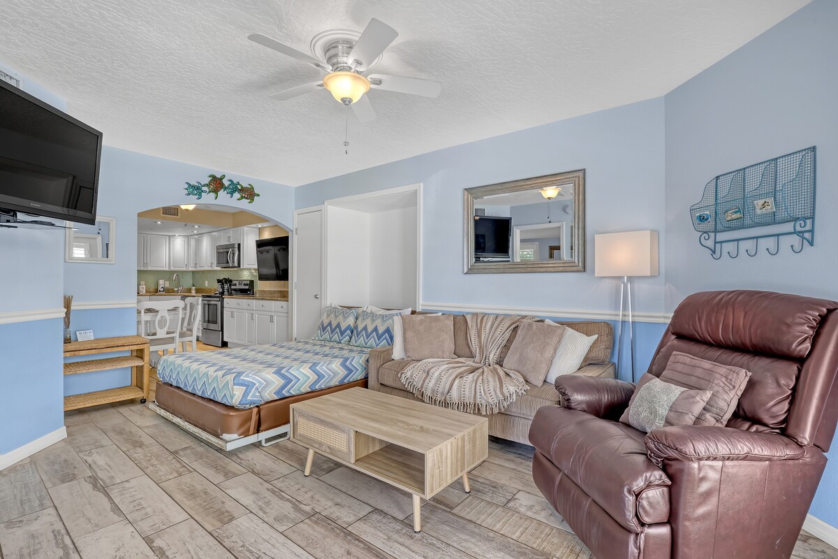 Nedavno renoviran udoban studio apartman sa mnogo pogodnosti, jedan blok od plaže. Pogodno se nalazi između Port Kanaverala i centra Kokoa Biča. Čist i pristupačan smještaj na plaži sa trgovinama namirnicama, barovima i restoranima u blizini. Televizija uživo dostupna je samo sa aktivnim nalogom u aplikacijama za prenos uživo. Pošaljite poruku domaćinu ako trajanje boravka nije dostupno u trenutku rezervacije.