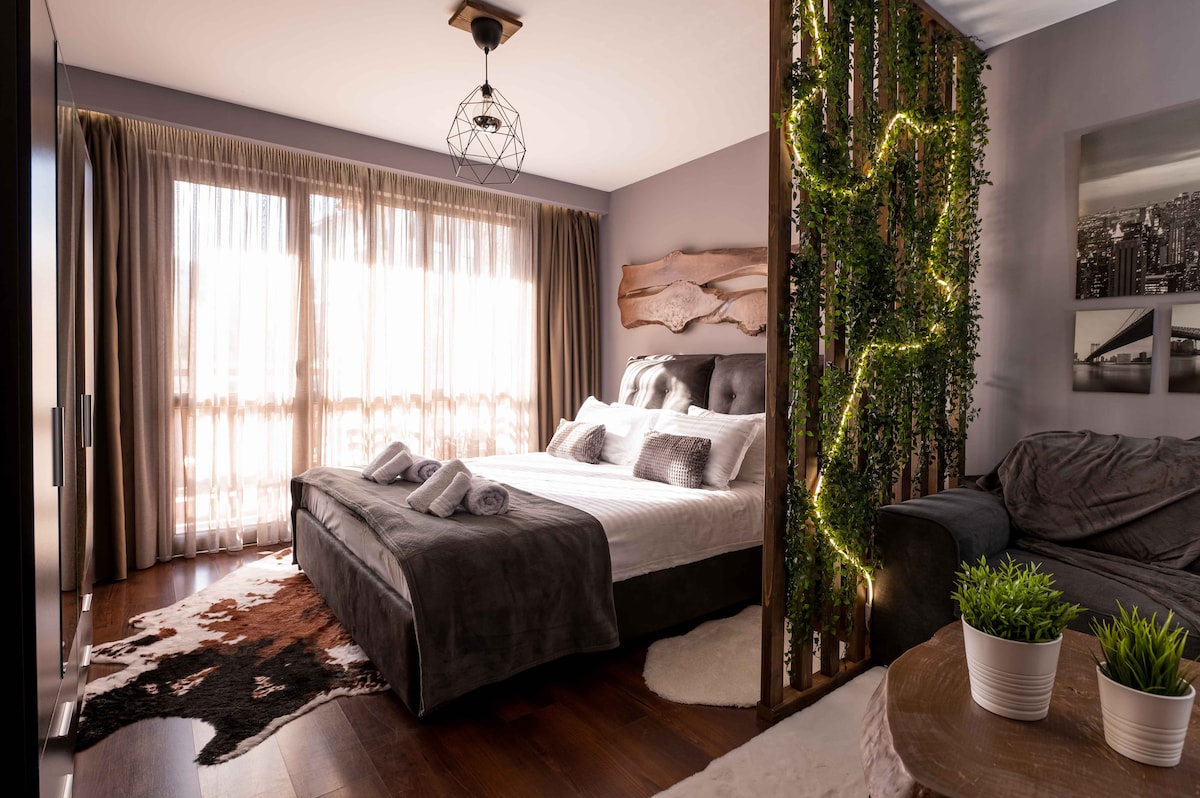 Dobro došli na ovaj moderan i moderan Airbnb sa zadivljujućim panoramskim pogledom na planine Pirin u Banskom. Lokacija je nenadmašna, samo 30 metara od skijaškog puta i nekoliko minuta hoda od Banskog restorana i apresskog stripa. Nakon jednog dana provedenog na padinama, naći ćete sve što vam je potrebno za opuštanje. Moderna i potpuno opremljena kuhinja, podno grejanje, udoban dnevni boravak i mašina za pranje/sušenje veša. Takođe možete da koristite 24-satnu besplatnu teretanu. Jedva čekam da vas ugostim!