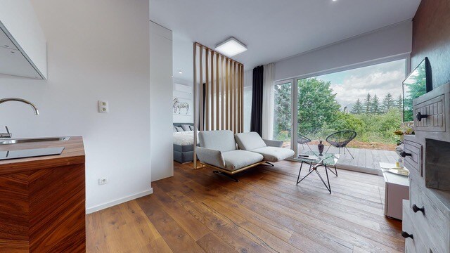 Uživajte u svom trenutku mira na selu sa prelepim pogledom na niske Tatre u minijaturnoj kući u dizajnerskoj minijaturnoj kući udaljenoj samo 10 minuta od skijaških staza golf odmarališta Tale.
