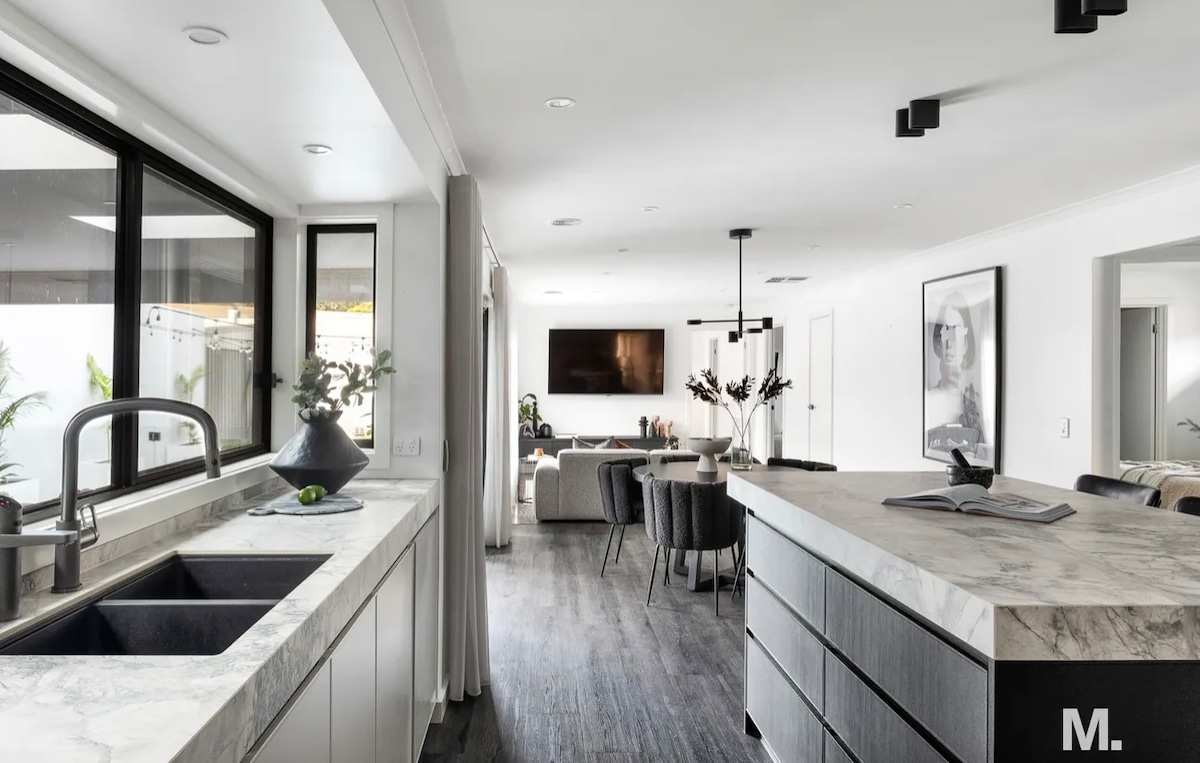 Potpuno renoviran 2023. godine i transformisan od strane dizajnera „13 enterijera”, jednog od vodećih dizajnerskih studija u zemlji. Stilistkinja i režiserka Keli Donoger dizajnirala je dom sa šik crno-bijelom estetikom 🖤 kvalitet i klasa koje morate vidjeti da biste povjerovali The alfresco is great for family meeting and the poolside sanctury is perfect private Uživajte u miru – ovdje ćete jedva primijetiti buku aviona, jer su rute leta na suprotnoj strani predgrađa