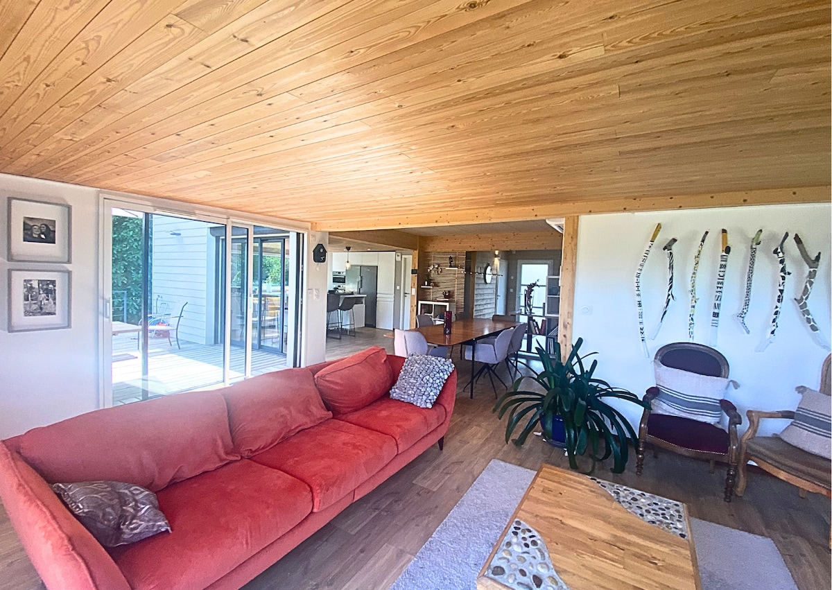 Dođite i napunite baterije u ovoj prelepoj drvenoj planinskoj kući sa terasom od 35 m2 sa hidromasažnom kadom i neverovatnim pogledom na okolnu prirodu. Manje od 4 km nakon izlaza sa autoputa Les Salles (42), Le Chalet se nalazi između istorijskog sela Cervičres i sela Noirétable sa svojim Casino de jeux, njegovim vodenim tijelom i svim lokalnim prodavnicama. Pozivam vas da pratite Chalet Yolo @chaletyolo