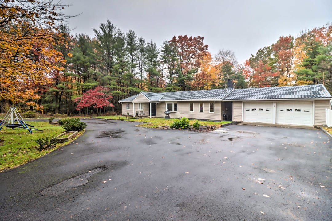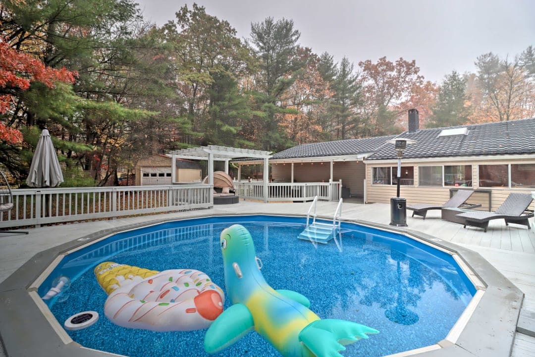 Ovaj udoban dom sa potpuno ograđenim dvorištem nalazi se u srcu planina Pokono. Udaljen je nekoliko minuta od planine Camelback, The Crossings Premium Outlets, Pocono trkačke staze, vodenih parkova u zatvorenom i na otvorenom, staze Appalachian Trail i nekih od najboljih mjesta za ribolov i lov u Pensilvaniji. Objekat ima potpuno ograđeno dvorište od 1/3 hektara sa pristupom terasi, uključujući manji ograđeni prostor za puštanje pasa u više zatvorenog prostora od većeg ograđenog dvorišta. U kući su dozvoljeni kućni ljubimci.