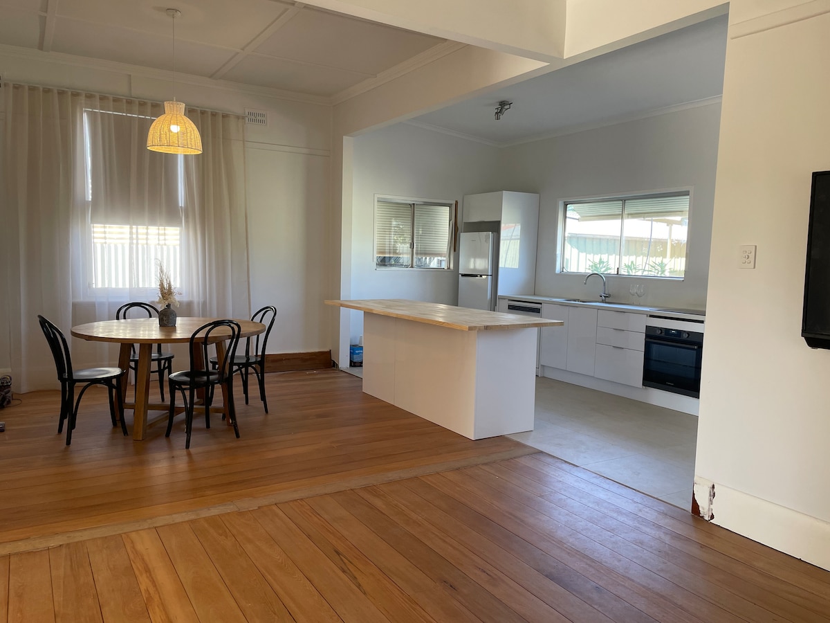 Opustite se u ovoj mirnoj seoskoj kući u gradu Broken Hilu, koji je pod zaštitom države, a koja je savršena za parove, porodice, putnike ili poslovne putnike. Bezbjedno parkirajte van ulice u garaži, sa prostorom za više vozila, kamp-prikolice ili velika vozila u dvorištu. Opustite se u električnim foteljama sa priključcima za punjenje, uživajte u brzom Wi-Fi mrežom, televizorima sa striming uslugama, udobnim krevetima i modernom, osvježavajućem tušu. Opustite se u zatvorenom prostoru ili prošetajte vrtom kako biste ubrali sezonsko voće sa stabala jabuka, šljiva, mandarina, marakuje i jagoda.