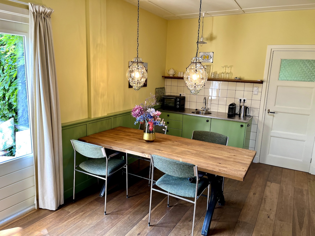 Het pand bestaat uit een grote hal met een aangrenzende badkamer met douche en toilet, een volwaardige keuken met kookplaat, oven, koelkast en koffie en thee faciliteiten, en een groot verblijf waarin gewoond en geslapen kan worden. Bovendien heb je de beschikking over de om- en aangrenzende tuin met diverse zitjes. Ontbijt kan worden bijgeboekt op vrijdag-zaterdag-zondag. Dit kan ter plekke worden afgerekend. Kosten zijn € 11.- per persoon, per ontbijt.