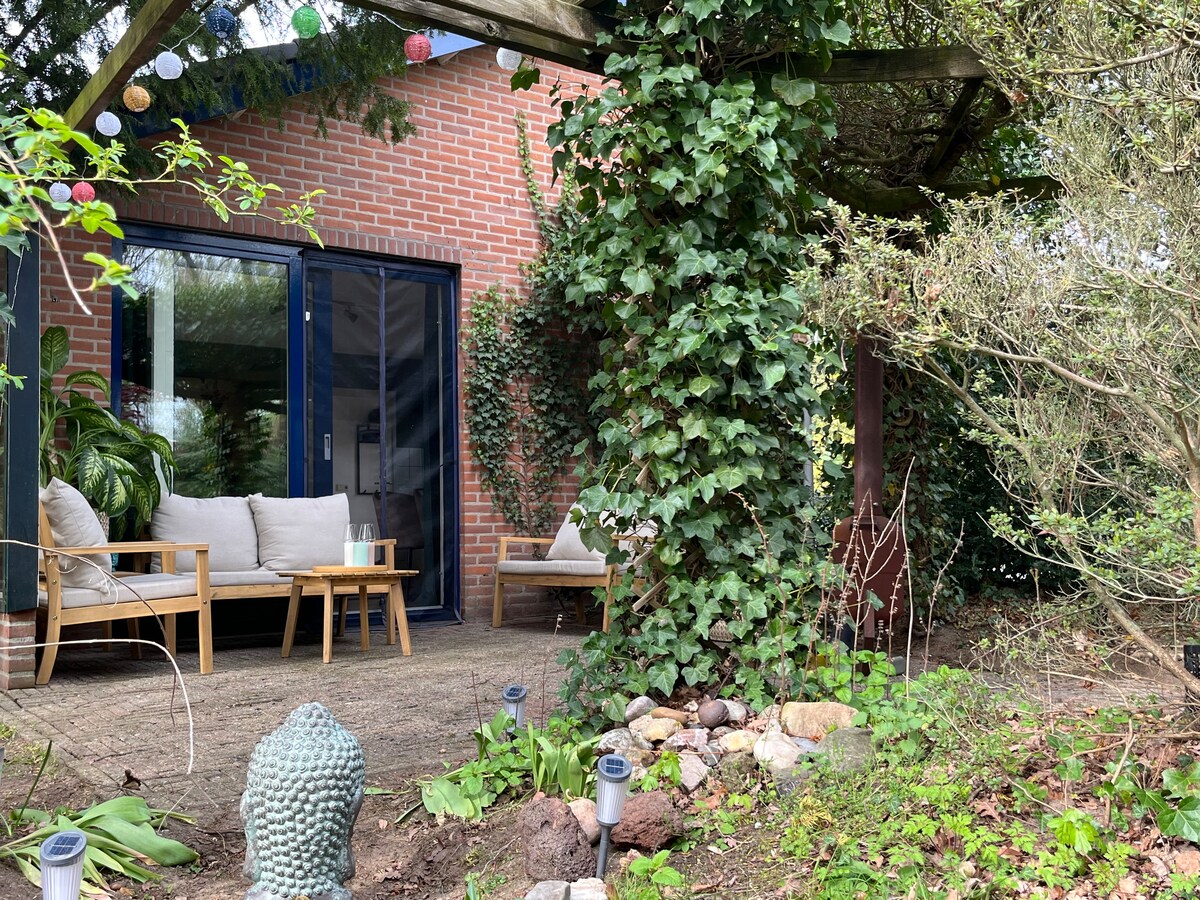 Opustite se i uživajte u ovom udobnom i šarmantnom prostoru. Iz našeg udobnog smještaja u Aherhuku (preko 40 m²) možete uživati u prirodnom okruženju, sa pogledom na šumu i dva praseta. Možete da čujete i vidite mnogo ptica tokom cijelog dana. Spavate u udobnom potkrovlju, gdje možete doći sa čvrstim stepenicama. Ostalo: Imate privatni ulaz, prostor za rad/učenje (podesiv) i privatnu baštu s terasom (uključujući roštilj). Uključujući knjige i igre. Slušajte muziku, putem Bluetooth-a ili LP plejera, i razgledajte oko sebe...