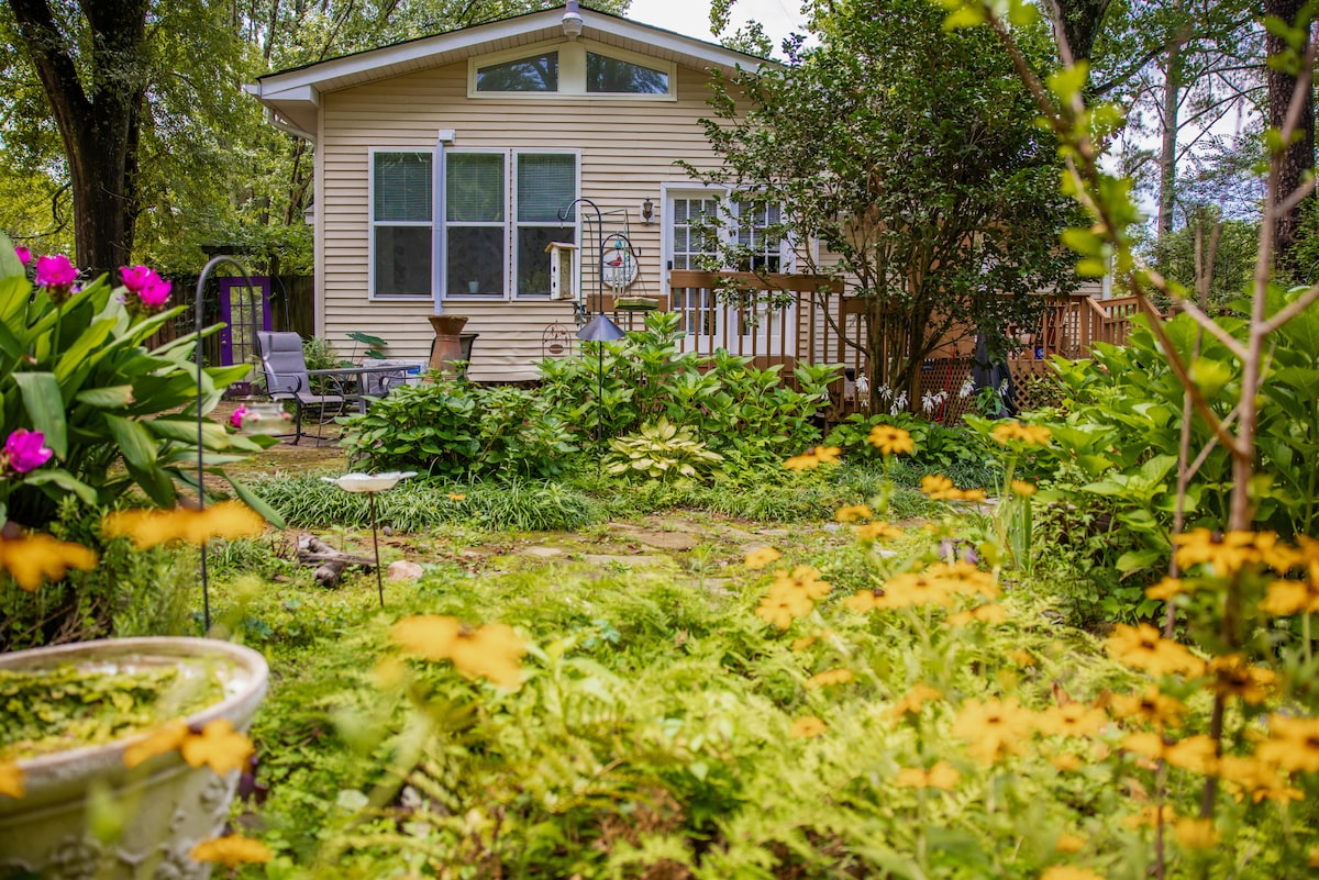 Neodoljiva minijaturna kuća, savršen bijeg od gužve i vreve hotela. Uživajte u prizorima i zvucima prirode, dok ste u blizini svih pogodnosti centra Decatura i Atlante bez boravka u gradu. Smješten u džepu iza moje kuće i okružen prirodom i drvećem. 335 kvadratnih stopa sa svime što je potrebno, spavaća soba u potkrovlju sa krovnim prozorima, kupatilo, kuhinja sa frižiderom i malim prenosnim šporetom, mikrotalasna pećnica, toster, stanica za kafu (Keurig i javorov sirup)
