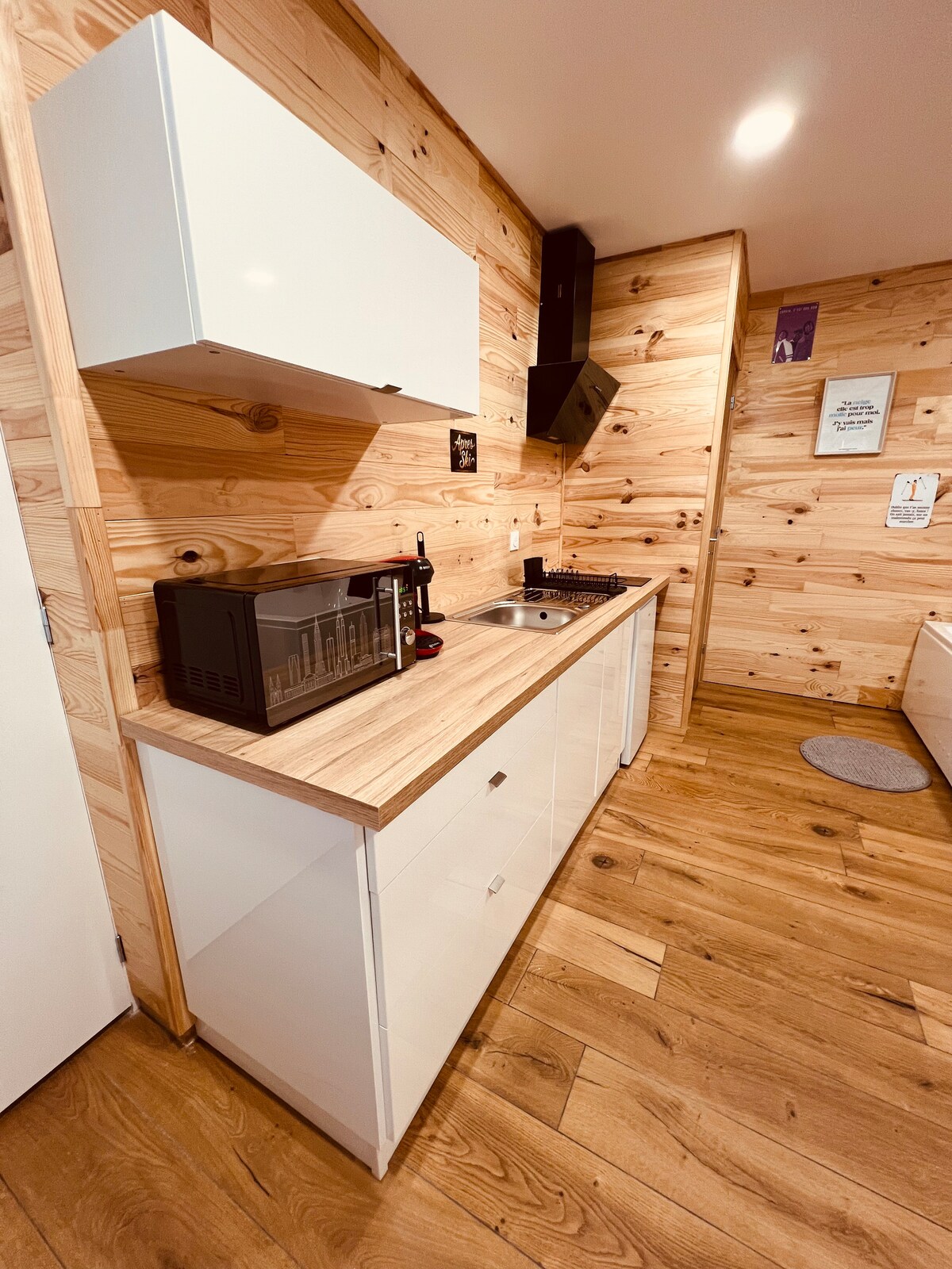Smeštena u srcu normandijske unutrašnjosti, Mala jabukovača se ponosi svojim mestom u podnožju gita Apelri Hil, to je savršeno mesto da se opustite, opustite i uživate zajedno. Minijaturna kuća sa svime što vam treba, luksuznom posteljinom, bademantilima i nordijskim spa centrom - sve je uključeno u cenu! U blizini istorijskog grada Vilediju les Poeles, na manje od sat vremena od Mont Sent Mišel, D-dnevnih plaža, na samo pola sata do neke od najspektakularnijih obala u donjoj Normandiji.