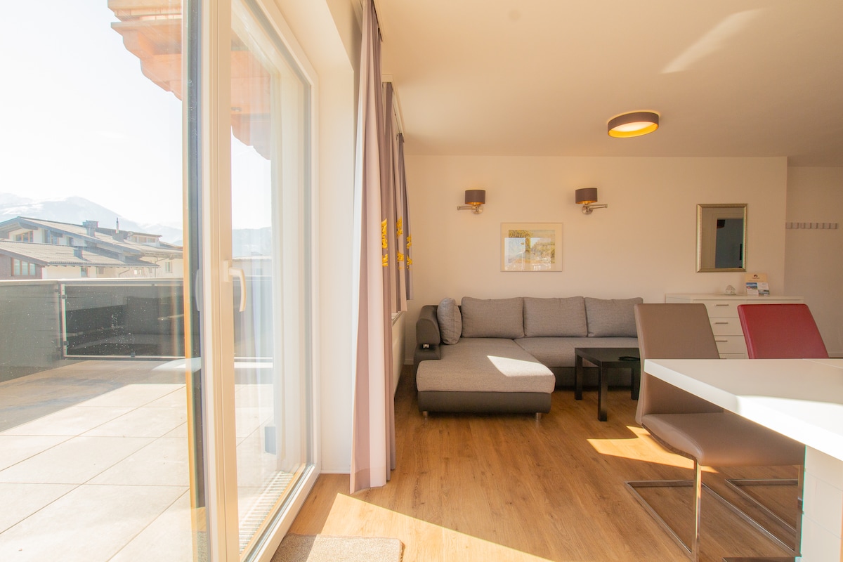NOVO! Predivan butik i prostran trosoban stan, savršen za 2 porodice / prijatelja (6-8 osoba). Idealno se nalazi na samo nekoliko minuta od ski lifta i jezera u Zell-am-See. Uživajte u zadivljujućem pogledu na planine iz spavaćih soba, dnevnog boravka i sa sunčanog balkona okrenutog prema jugu. Sa potpuno opremljenom modernom kuhinjom sa rernom, mašinom za pranje sudova i veš mašinom, neobičnom umjetnošću, visokokvalitetnom posteljinom i dizajnerskim namještajem, pametnim TV-om, konzolom za igre + društvenim igrama + 3 besplatna parking mjesta na kojima se zaista možete opustiti.