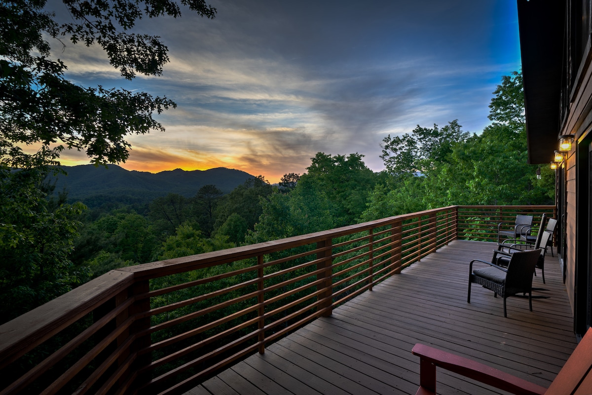 Valley View Cabin je novoizgrađena prelijepa brvnara od borova. Brvnara je četvorosobna jedinica sa tri kupatila, za devet osoba, sa sobom za aktivnosti u podrumu i profesionalnim stolom za stoni fudbal. Iz brvnare se pruža panoramski pogled na okolne Smoki Mountains. Trijem na otvorenom je savršeno mesto da se opustite. Naš Starlink satelitski brzi internet Wi-Fi i Dish TV vas održavaju povezanim sa spoljnim svijetom. Uživajte u vatrenom prstenu i roštilju u privatnom dvorištu s pogledom na dolinu.