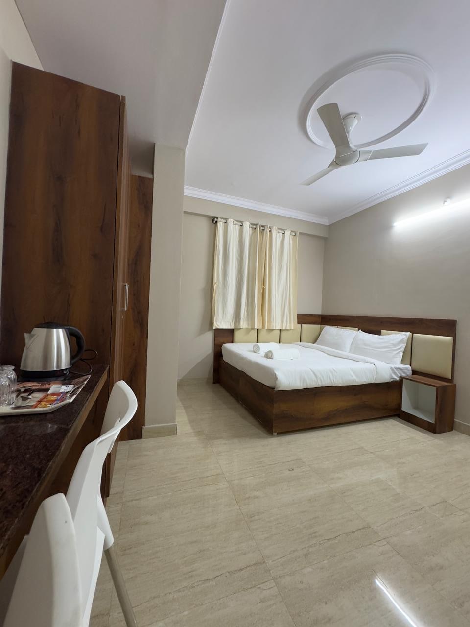 Ostanite u centru zbivanja u ovom jedinstvenom smještaju. Apartmanske sobe u hotelu Sri Aditya Inn u Anantnagaru, Bengaluru – čist i udoban prostor za miran boravak u blizini čvorišta Elektronskog grada. Soba ima mekani bračni krevet (king size), čistu posteljinu, Wi-Fi, pametni TV, klima-uređaj i privatno kupatilo Bilo da ste ovdje zbog posla ili kratkog odmora, ova udobna soba nudi privatnost, udobnost i domaću atmosferu.