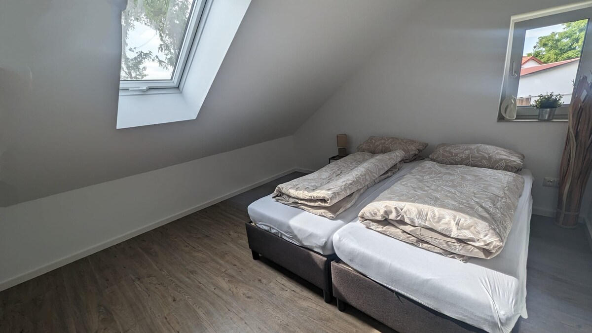 Mirno, ali centralno smešten trosoban stan u potkrovlju sa balkonom u srcu velikog županijskog grada Erdinga. Na raspolaganju su frižider, mikrotalasna rerna i aparat za kafu. За неколико минута стиже се до новоствореног рекреативног простора са језером за купање, играма и спортским садржајима. Takođe možete doći do autobuske stanice do Terme Erding, S-Bahn stanice Erding i aerodroma u Minhenu za nekoliko minuta. Put do aerodroma u Minhenu traje 15 minuta automobilom.
