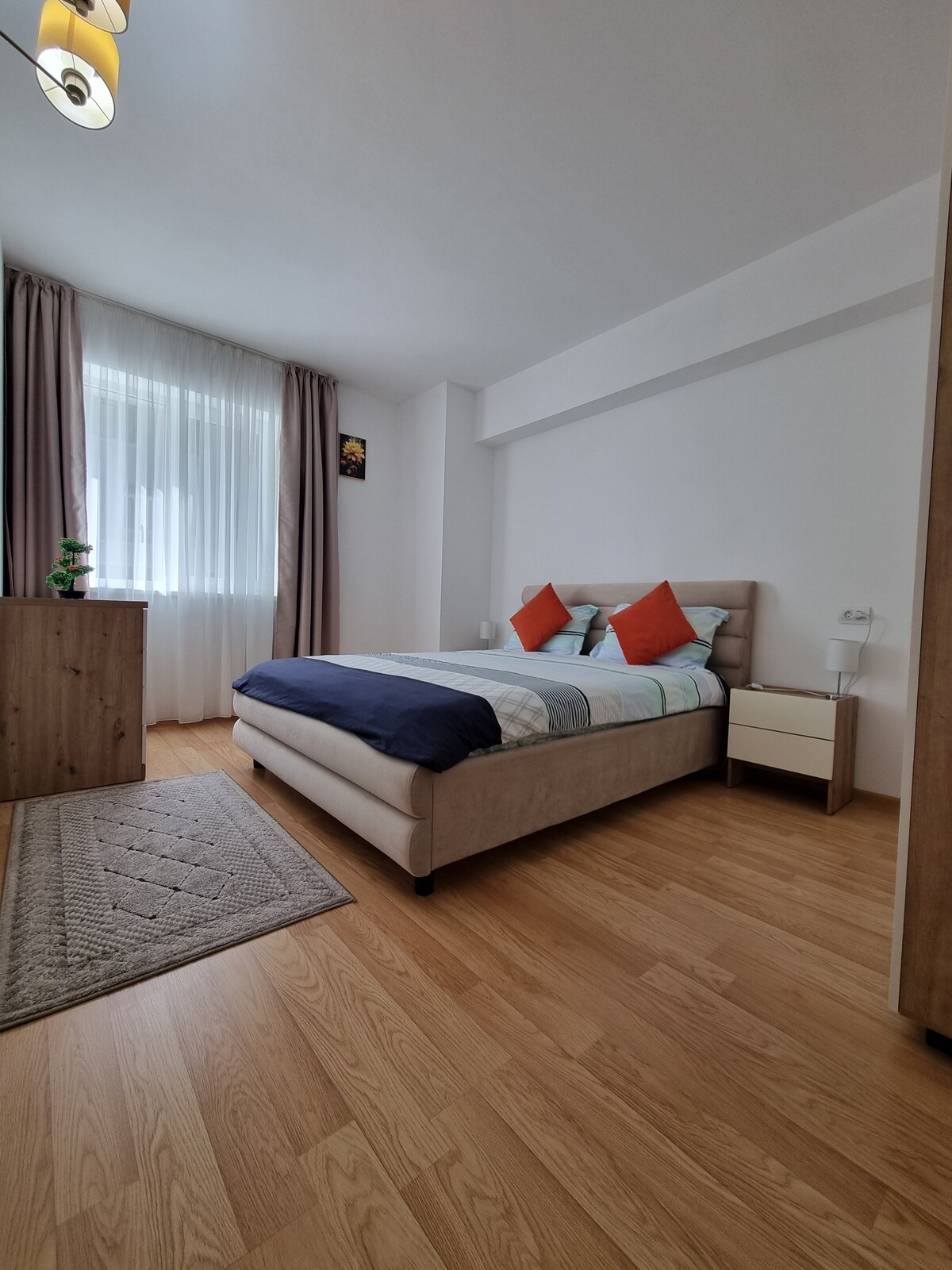 Uživajte u elegantnom doživljaju u ovoj rezidenciji u centru grada. Ovaj stan ima sledeće sadržaje: Privatni parking sa barijerom Zidovi uređeni sa Stucco Veneziano 4K Smart TV sa Netflix-om i klima-uređajem Kompleks nudi: unutrašnje i spoljašnje bazene, mokre i suve saune, đakuzi i fitnes centar. Udaljenost do Velnes centra iznosi 500 metara, a do Akva bašte 550 metara, otprilike 7 minuta hoda. Cijena za pristup bazenu je 70 RON po osobi.