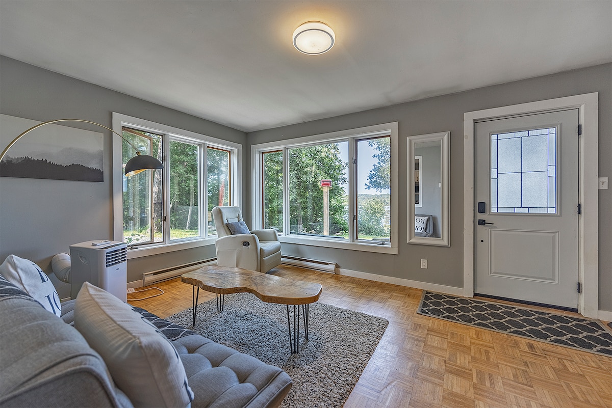 Custom-built year-round retreat in the Frontenac Arch, nestled in the woods—private, quiet, and steps to the lake for canoeing or SUP adventures. Relax on the deck under the stars or soak in the hot tub after a day of adventure. Enjoy vaulted ceilings, soaring windows, a wood stove, outdoor fire pit, custom kitchen, heated floors, rain shower, clawfoot tub, and a bright open layout. 25 mins to Frontenac Provincial Park and 40 mins to Kingston.