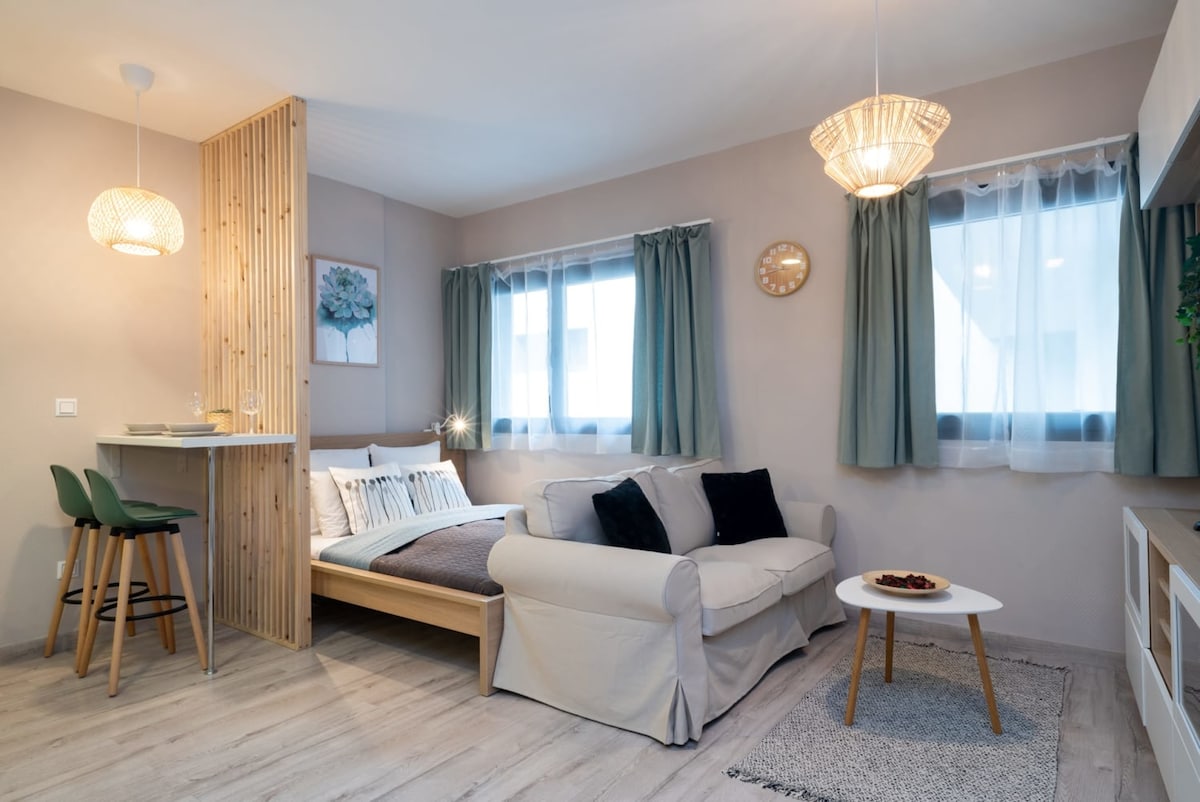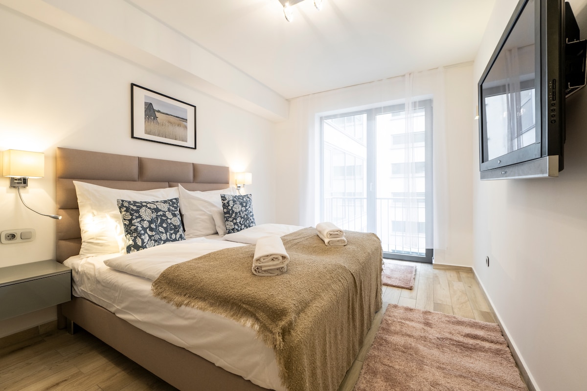 Kada je u pitanju dizajn ovog romantičnog stana, cilj je bio da se stvori smještaj u modernom, ali šarmantnom stilu, mjesto puno sadržaja i pažljivo osmišljenih detalja. Ovaj privlačni stan sa 2 balkona sa kvalitetnim bračnim krevetom (160x200), masivnim kaučem na izvlačenje (145x200) i privlačnim enterijerom idealan je i za parove ili male porodice. Zgrada je okrenuta prema živopisnoj i prometnoj ulici u centru grada, odakle ćete imati nesmetan pristup prostoru za zabave i glavnim gradskim znamenitostima.