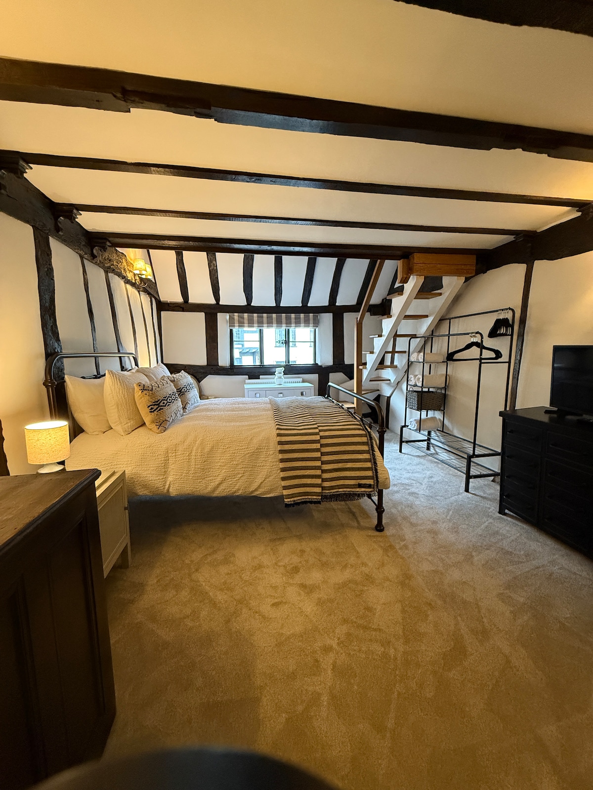 Kuća u potkrovlju nalazi se 5 milja od Stratforda na avonu i 4 milje od istorijskog Vorvika, a javni autobus ide između dva grada svakih sat vremena sa stajalištem 200 metara od ulaza u potkrovlje. Ima centralno grejanje na gas, sva posteljina je opremljena i nudi udoban i udoban salon sa TV-om i radiom, potpuno opremljenu trpezariju/kuhinju, jednu veliku spavaću sobu, sa zasebnim kupatilom i tuš-kabinom. Takođe je tu šetnja u garderobi i skladište za slučajeve itd.