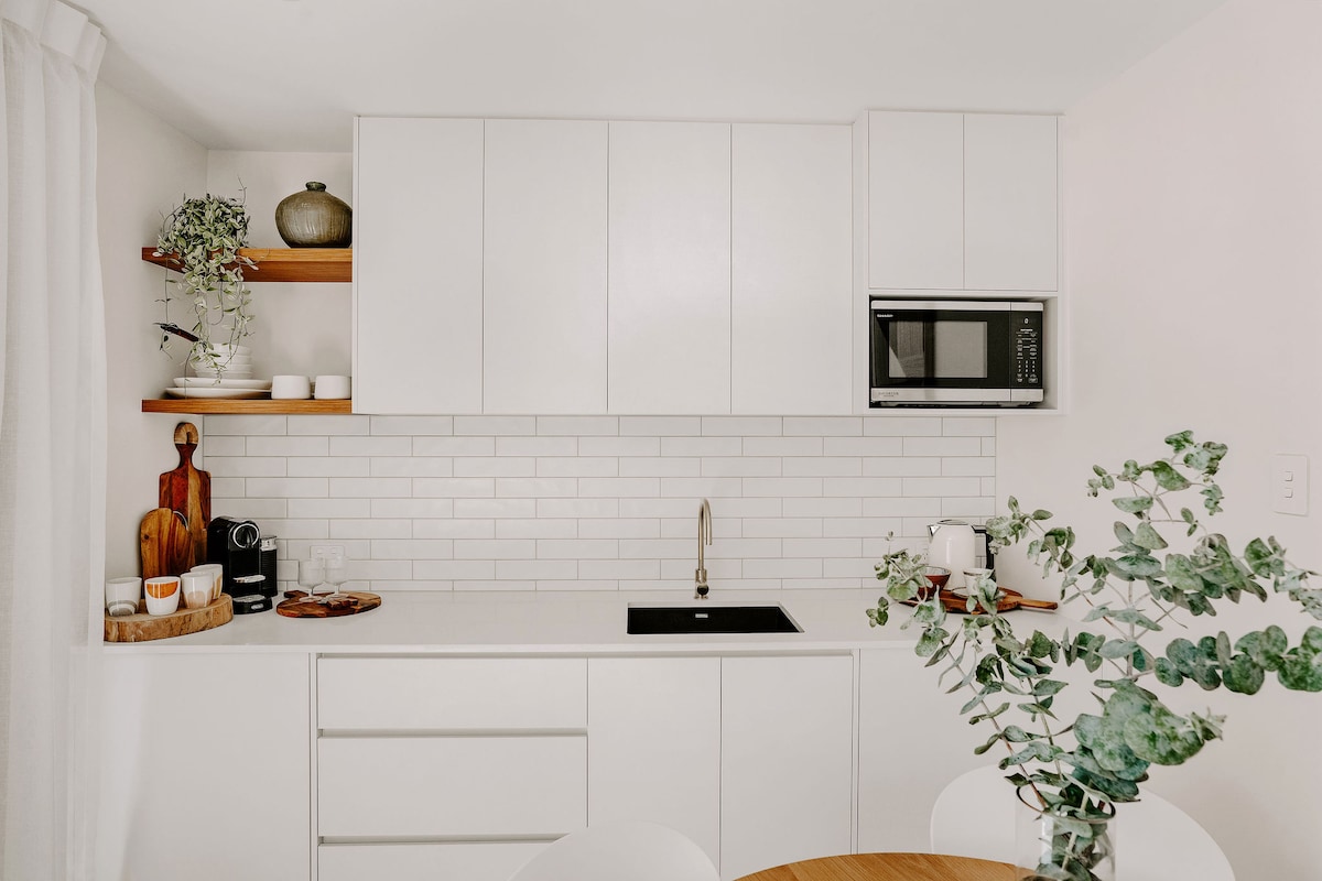 SOULITUDE je prelijepo uređen studio apartman, udaljen samo 100 metara od plaže. Kombinujući zemljani minimalizam sa luksuznim završnim obradama, opremljen je svime što vam je potrebno za bujno, duševno utočište — uključujući zadivljujuće spoljašnje kupatilo, raskošnu posteljinu, udoban krevet na razvlačenje i privatno dvorište. Kada plaža pozove, na raspolaganju su vam daske za surfovanje, daske za veslanje na dasci i bicikli. A sa kafićima, barovima i okeanom u roku od nekoliko minuta hoda, neće vam trebati automobil... i nikada nećete poželjeti da odete.