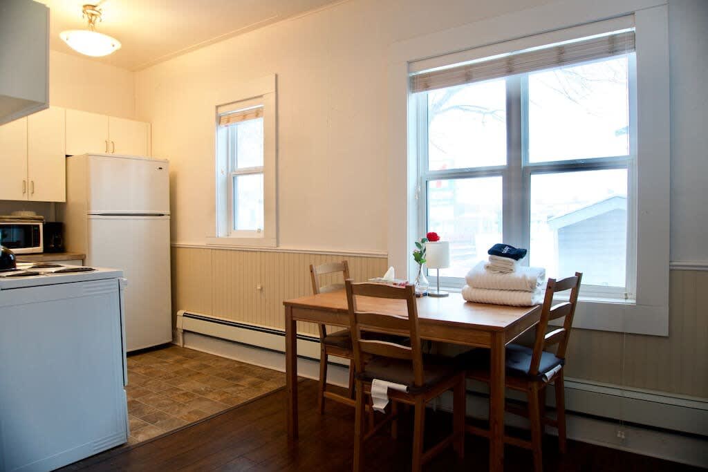 Uživajte u boravku kod nas u potpuno opremljenoj kuhinji (frižider, šporet, sudopera, mikrotalasna pećnica, Keurig). 2 BR: bračni krevet (širine 150-179 cm) i bračni krevet (širine 150-179 cm Kauč na razvlačenje u dnevnoj sobi omogućava da boravi ukupno 6 gostiju odjednom. Kupatilo ima kadu i tuš. U blizini Moose Jaw Events Centra za hokejaške utakmice i koncerte, kao i Yara Centre. Besplatan zajednički prostor za pranje veša je dostupan. Igrajte se u parku i klizalištu na otvorenom preko ulice.