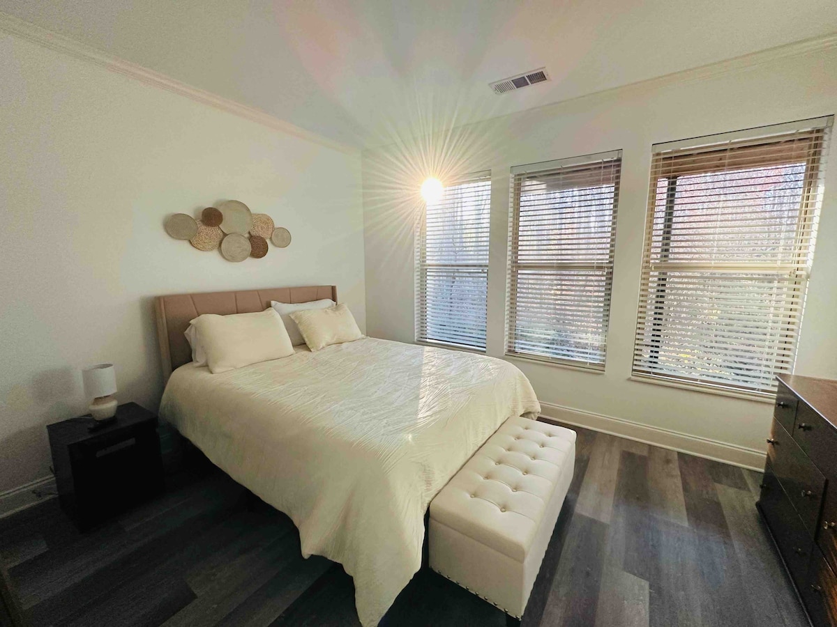 Prostrani apartman za goste u prelijepoj četvrti Buford sa privatnim ulazom i unutrašnjim dvorištem. Sadrži veliku spavaću sobu sa bračnim krevetom i dovoljno prostora za odlaganje, 2 kupatila i kompletnu kuhinju opremljenu priborom, začinima, tanjirima, loncima i tiganjima. Uživajte u velikom dnevnom boravku sa trpezarijom, pametnim TV-om i brzom Wi-Fimrežom. Idealno za poslovne putnike ili parove. Samo 10 minuta do tržnog centra Džordžije, 15–20 minuta do jezera Lanijer i kratka šetnja do imanja Four Oaks Manor. Obližnji parkovi, prodavnice i lokalni kafići.