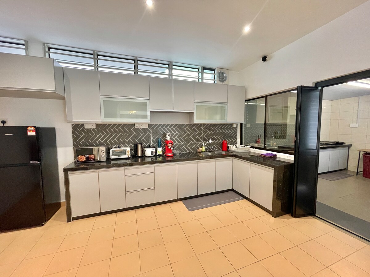 Novouređen sa potpuno novim namještajem, bio je 5 spavaćih soba i 4 kupatila,prostrana dnevna soba sa prostorom za igru stola, ogromna trpezarija i kuhinja Dodatni pristup: - Besplatan Wi-Fi - Smart TV(YouTube i Netflix) - Mašina za sušenje veša - Gvožđe - Dozator vode - Neophodno za kuvanje - Mašinu za pranje veša - Hladnjaci 📍Nalazi se u centru Bukit Mertajam 2 minuta hoda do crkve St .anne 5 minuta hoda do banke 5 minuta hoda do veša 5 minuta hoda do Klinika i farmacije 5 minuta hoda do prodavnice¥ 5 minuta hoda do više od 5 restorana