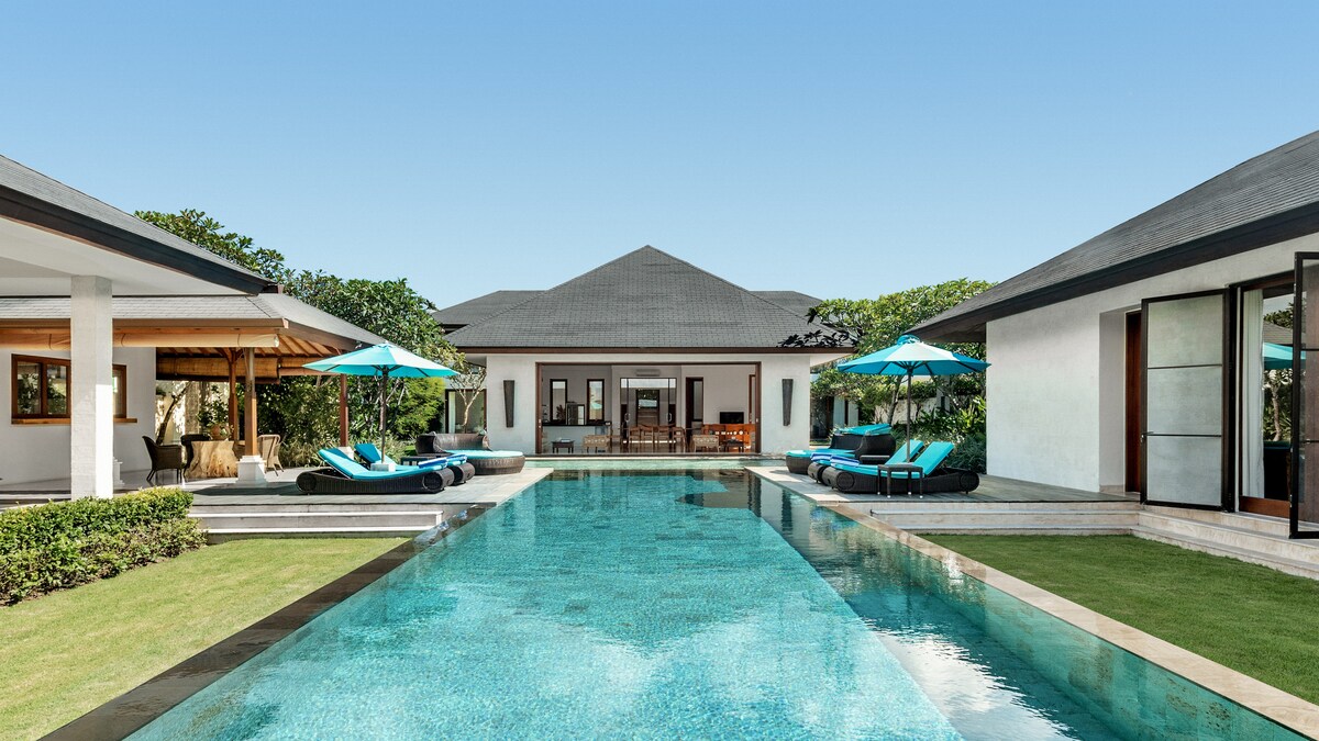Spacious 5-bedroom villa in Umalas, perfect for families and groups. Enjoy a 30m lap pool, outdoor bar, BBQ, and lush tropical garden. Open living spaces and elegant design create a true Bali escape, just minutes from Seminyak and Canggu beaches, cafes, and dining. Includes full-time staff, daily cleaning, and super-fast 500Mbit fibre optic Wi-Fi for a seamless, worry-free stay.