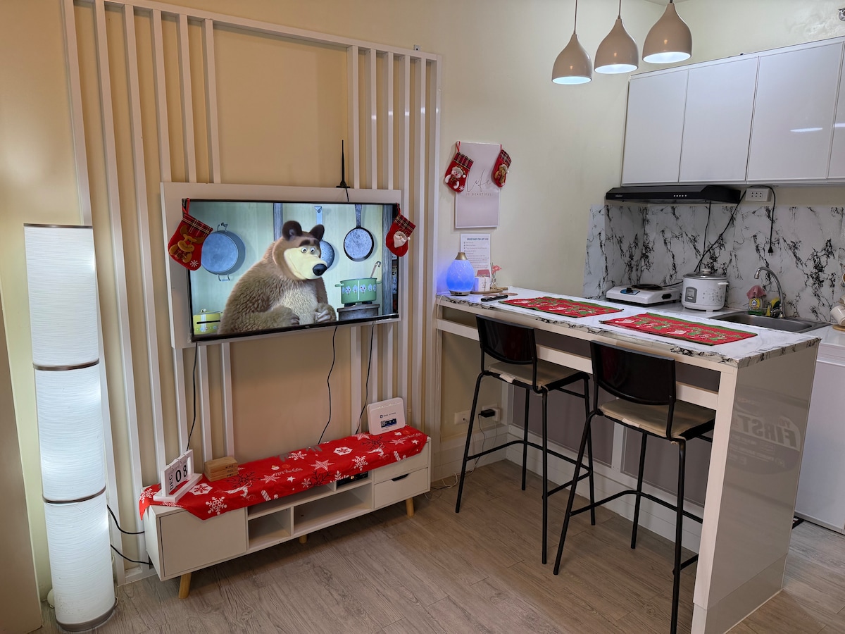 Udobna i udobna garsonjera smještena je u srcu SMDC Cheer Residences u Marilau, Bulacan! Naša jedinica je kompletno namještena i opremljena sa svime što vam treba za udoban i ugodan boravak, uključujući udoban bračni krevet, sofu na razvlačenje, TV sa ravnim ekranom, trpezarijski sto, čajnu kuhinju sa frižiderom, mikrotalasnu rernu, kuvalo za vodu i osnovno kuhinjsko posuđe, privatno kupatilo sa toplim i hladnim tušem, bazen, danonoćno obezbeđenje i recepciju.