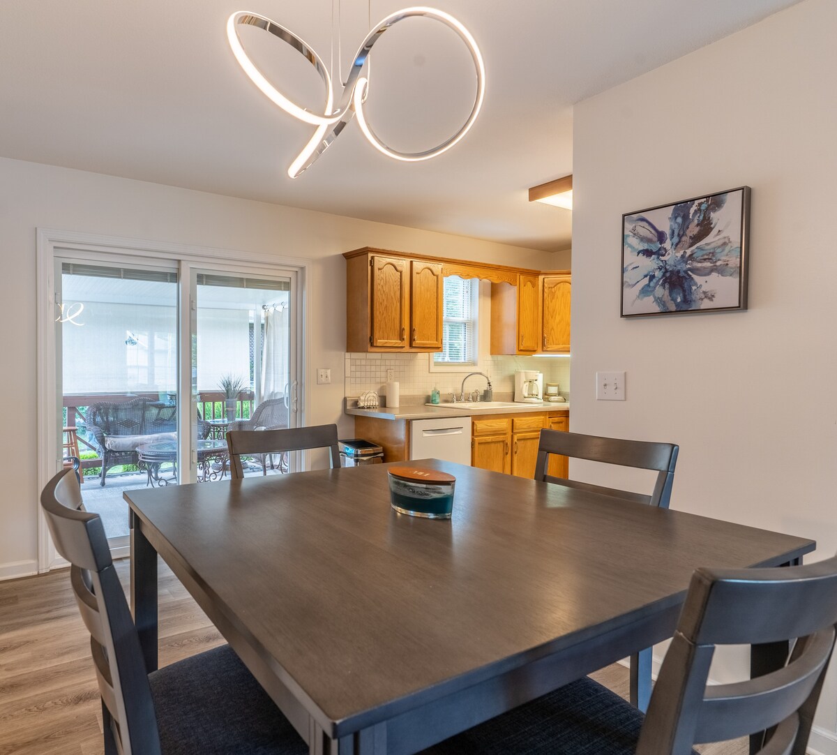 Dobro došli u kuću na jezeru Lone Tree - prelijepo renovirano utočište sa 3 spavaće sobe i 3 kupatila inspirisano mirnim vodama jezera Bull Shoals i legendarnom Bijelom rijekom. Smješten među visokim borovima, ovaj rustikalno moderan dom pruža osjećaj da ste smješteni u luksuznoj kućici na drvetu. Zid s prozorima preplavljuje prostor prirodnim svjetlom i pruža panoramski pogled na jezero i valovita brda Ozark - savršena pozadina za miran odmor.