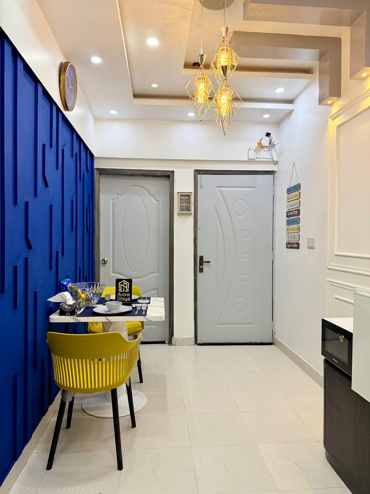 Ovaj cijeli studio apartman sa spavaćom sobom, dnevnim boravkom i trpezarijom u kuhinji koji se nalazi u DHA Phase VI Small Bukhari na 1. spratu ima sve što vam je potrebno. Uronite u udoban bračni krevet, uživajte u zvučnom sistemu JBL ili se opustite u dnevnoj sobi na baršunastoj sofi. Sa dva kupatila, nema čekanja. Skuvajte oluju u elegantnoj kuhinji, a zatim uživajte pod sjajem lučne lampe zapanjujućom majstorskom slikom. Osim toga, uživajte u korpi dobrodošlice, vodi i hladnim pićima na naš račun.