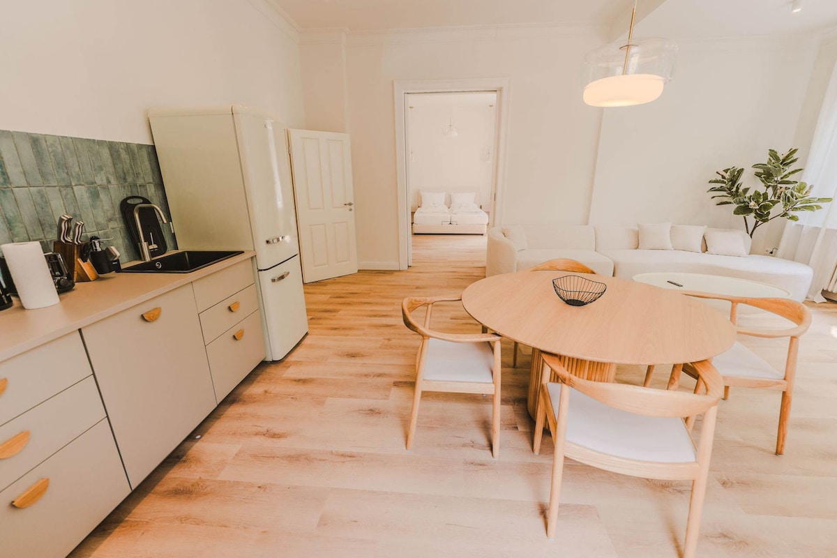 Stan u potkrovlju završen u avgustu 2021. godine sa mirnom lokacijom u centru grada. Dnevni prostor je otvorenog tipa i gleda na zabat, dobro opremljena kuhinja je uključena u otvoreni koncept. Stan je dizajniran sa podnim grejanjem i bambusovim parketom, a ima i kamin Pogled kroz prozore od poda do plafona pada na mirnu stambenu ulicu ili na zeleni krov. Dnevno kupatilo je opremljeno tuš kabinom u krugu od četvrtine kruga.