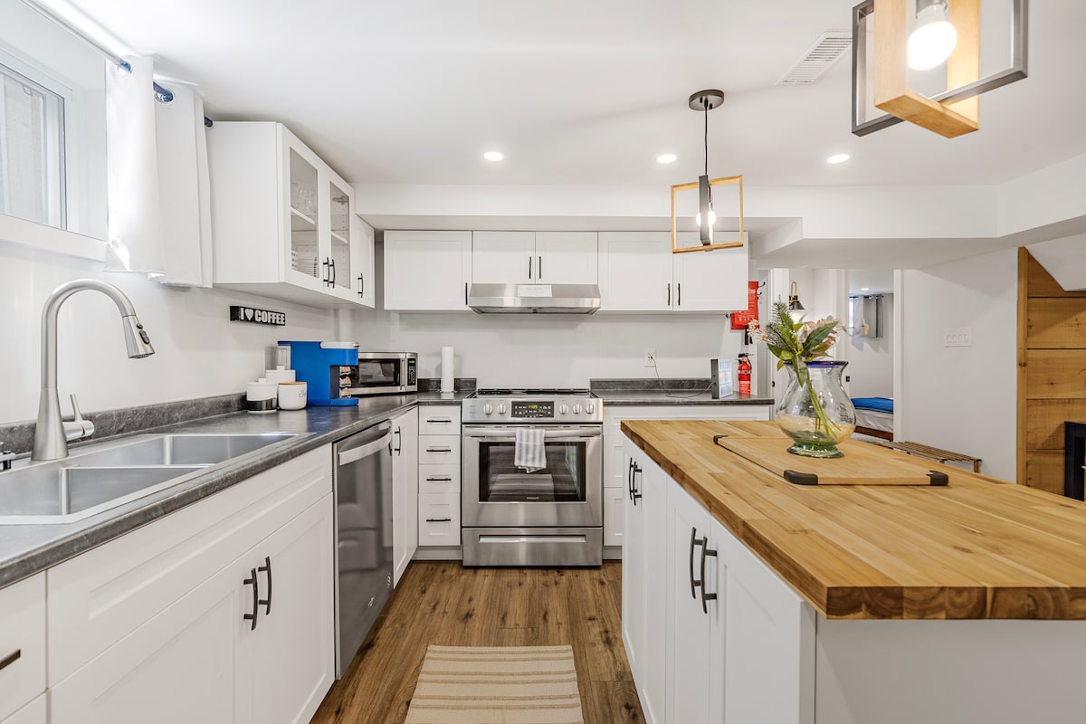 Uživajte u mirnom boravku u našem privatnom suterenu s 2 spavaće sobe koji je legalno uređen i koji se nalazi u mirnom dijelu Miltona. Zahvaljujući otvorenom rasporedu, plafonima visokim 2,6 metara i udobnim spavaćim sobama, idealan je za parove, porodice ili duže boravke. Nekoliko minuta od tržnog centra Toronto Premium Outlets, velodroma, slikovitih staza i lakog pristupa gradovima Oukvil, Berlington, Misisoga i aerodromu Pirson.
