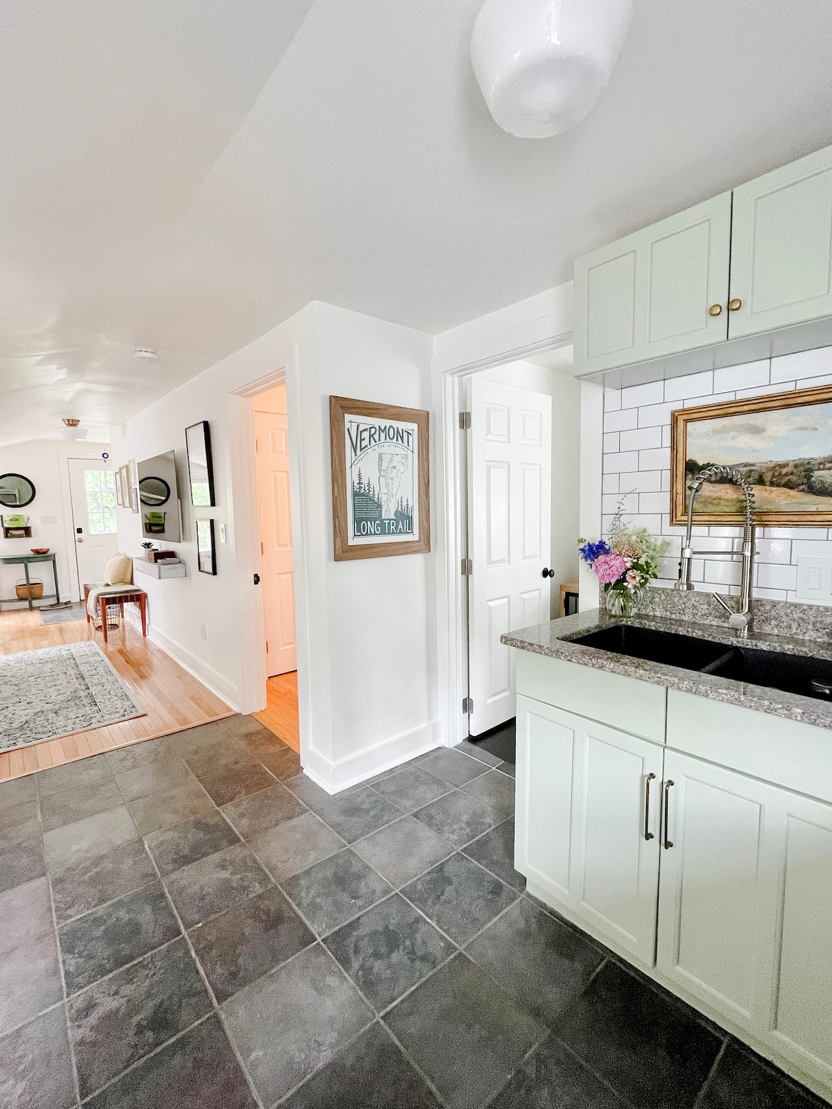 Ovaj potpuno renovirani stan u mirnom delu grada udaljen je od Berlington Bikeway-a i jezera Champlain. Uživajte u dobro opremljenoj kuhinji sa granitnim radnim površinama, novim aparatima pune veličine, trpezarijskim stolom i radnom površinom. Kreveti su veoma udobni i obezbeđujemo dodatne jastuke i ćebad. Ispunjen originalnim umjetničkim djelima i dizajnerskim stilom. Uključeno: brzi internet i strimovanje televizora, štampač i prečišćivač vazduha sa HEPPA sertifikatom za vašu bezbednost i udobnost