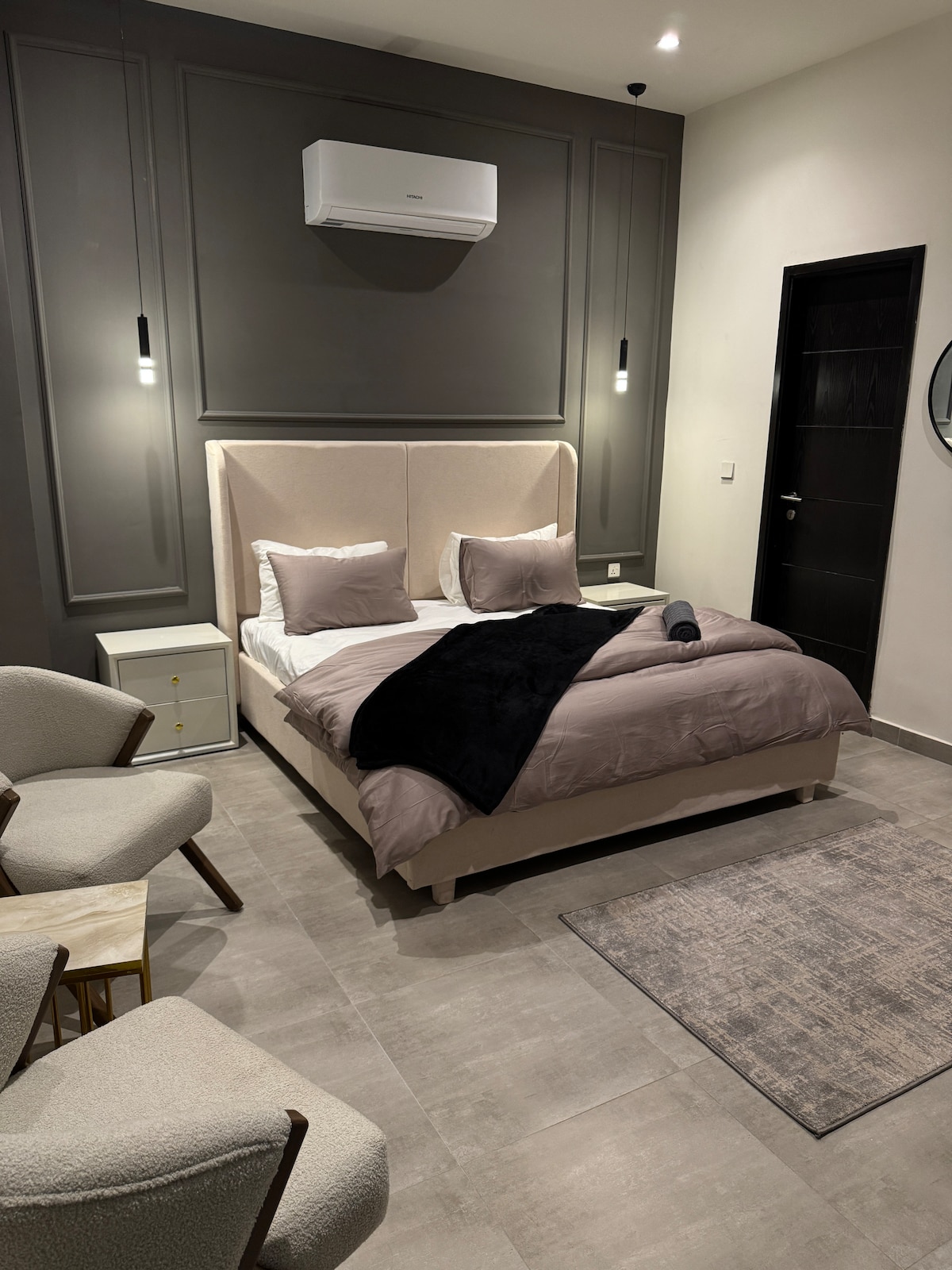 ✨ Moderan i udoban smještaj ✨ Uživajte u elegantnom smještaju sa bračnim krevetom, elegantnim dekorom i toplim osvjetljenjem. Veliki prozori pružaju prelijep pogled, dok je udoban prostor za sjedenje savršen za opuštanje. ✅ Ključne karakteristike: Moderan, svijetao enterijer Klima-uređaj Mirna i privatna lokacija 📍 U blizini kafića, prodavnica i atrakcija — idealno za parove ili putnike koji putuju sami.