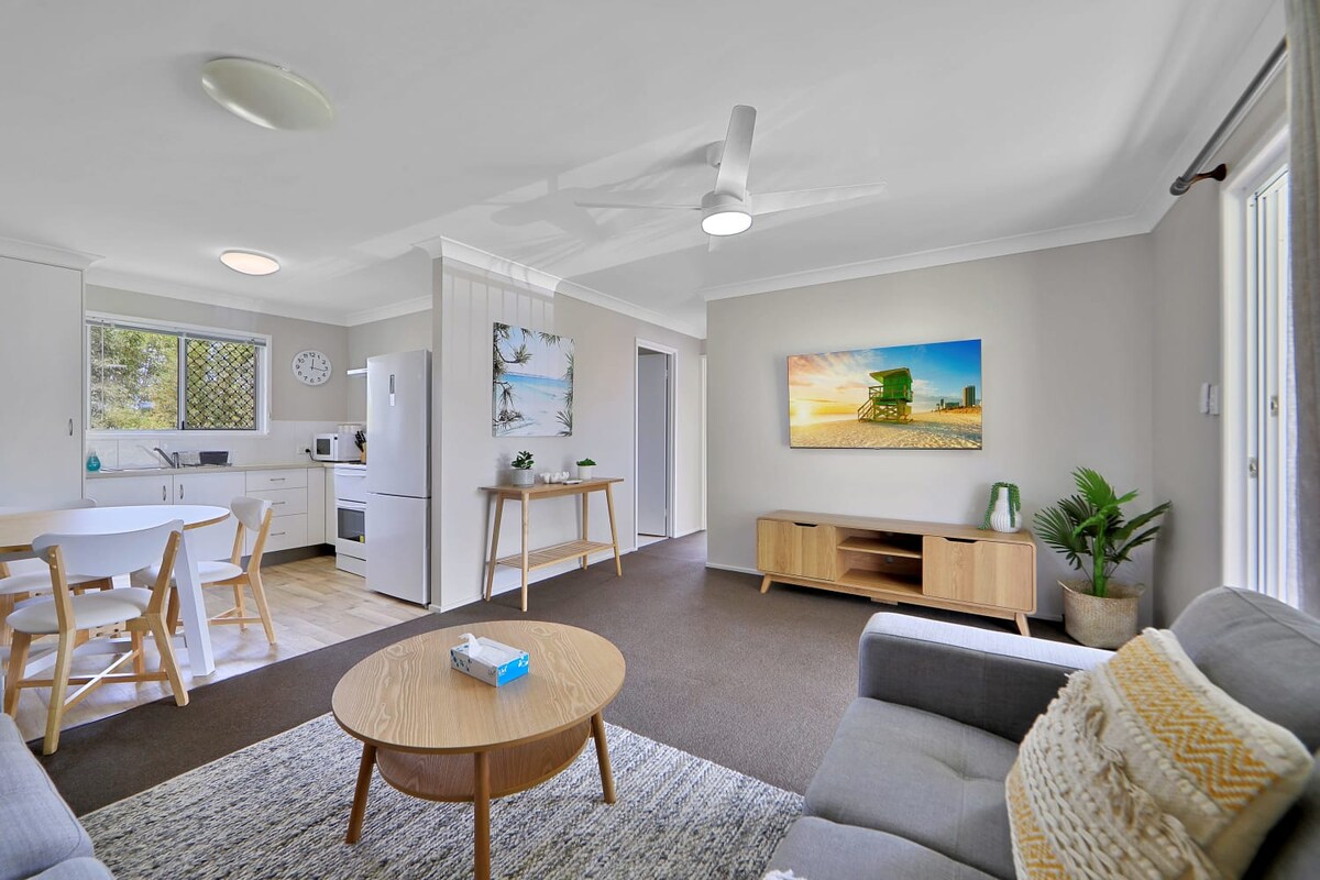 Popusti na dinamične cijene za manje grupe! Više informacija potražite u odjeljku „Pristup za goste” Uživajte u načinu života na plaži u ovoj kući u nizu smeštenoj između golf terena Bargara i Bargara Esplanade. Stražnja strana rezidencije ima privatnu, azijsku tropsku baštu sa trpezarijom na otvorenom i zelenim travnjakom za opuštanje nakon dana provedenog na plaži prije zalaska sunca. Ovo prebivalište nudi privatno utočište sa centralnim lokalitetom za sve što Bargara nudi.