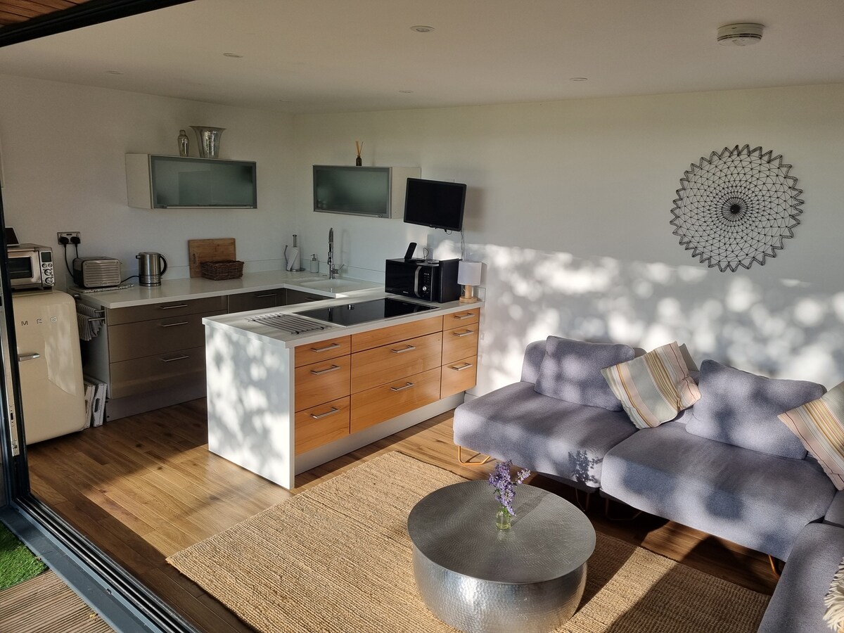 Zaljubite se u Briars Lodge, romantično skrovište za dvoje, smješteno u srcu Nove šume. Ova ručno izrađena luksuzna kućica ima privatnu hidromasažnu kadu, pogled na šume, livade i divlje cvijeće i elegantan enterijer. Savršeno za medeni mjesec, mini-odmor, rođendane ili godišnjice, opustite se pod zvjezdanim nebom, istražite šarmantne seoske pabove i doživite magiju pravog seoskog šarma u privatnosti sopstvenog skrovitog seoskog utočišta.