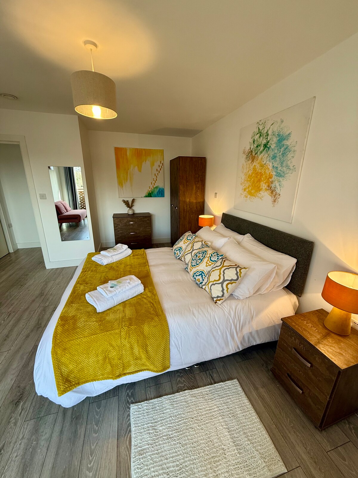 A home from home in a boutique block of just 9 apartments. Two bedrooms, 1.5 bathrooms, private balcony & free parking. Bushey Station is a 2-min walk with trains every 15 mins to London Euston (19 min). Harry Potter Studios is a quick drive away. We welcome families, couples, contractors, and business travellers. Weekly & monthly rates available on request. Zip-link beds set as super-king or twins. Luxstay Ventures provides accommodation nationally. *Book Direct For Exclusive Discounts*