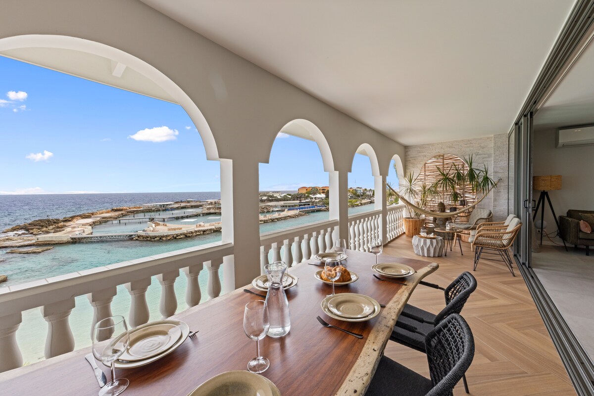 Mambo One – Luxe zeezicht appartement aan Mambo Beach Ontwaak boven de Caribische Zee in dit stijlvolle en moderne appartement, gelegen op een van de meest gewilde locaties van Curaçao: direct aan Mambo Beach Boulevard. Hier komen luxe, comfort en tropische ontspanning samen. Vanaf het moment dat u binnenstapt, ervaart u rust, ruimte en een panoramisch uitzicht op zee en zwembad, de perfecte setting voor een ontspannen verblijf op het eiland.