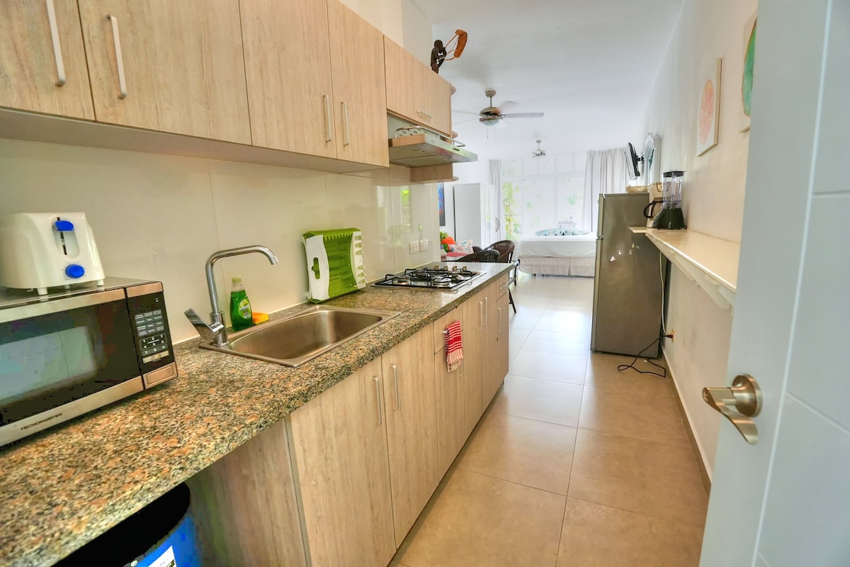 Otkrijte Cabarete Beach Hideaway – svijetli i elegantni studio udaljen samo 2 minuta hoda od plaže. Uživajte u brzom Wi-Fi mrežom, potpuno opremljenoj kuhinji, pristupu bazenu i vrhunskoj lokaciji nekoliko koraka od škola za kajting, barova na plaži i prodavnica. Možete da lansirate zmaja direktno na pristup plaži, što ga čini idealnim za kajt surfere. Savršena baza za sunce, vjetar i pravu karipsku atmosferu.