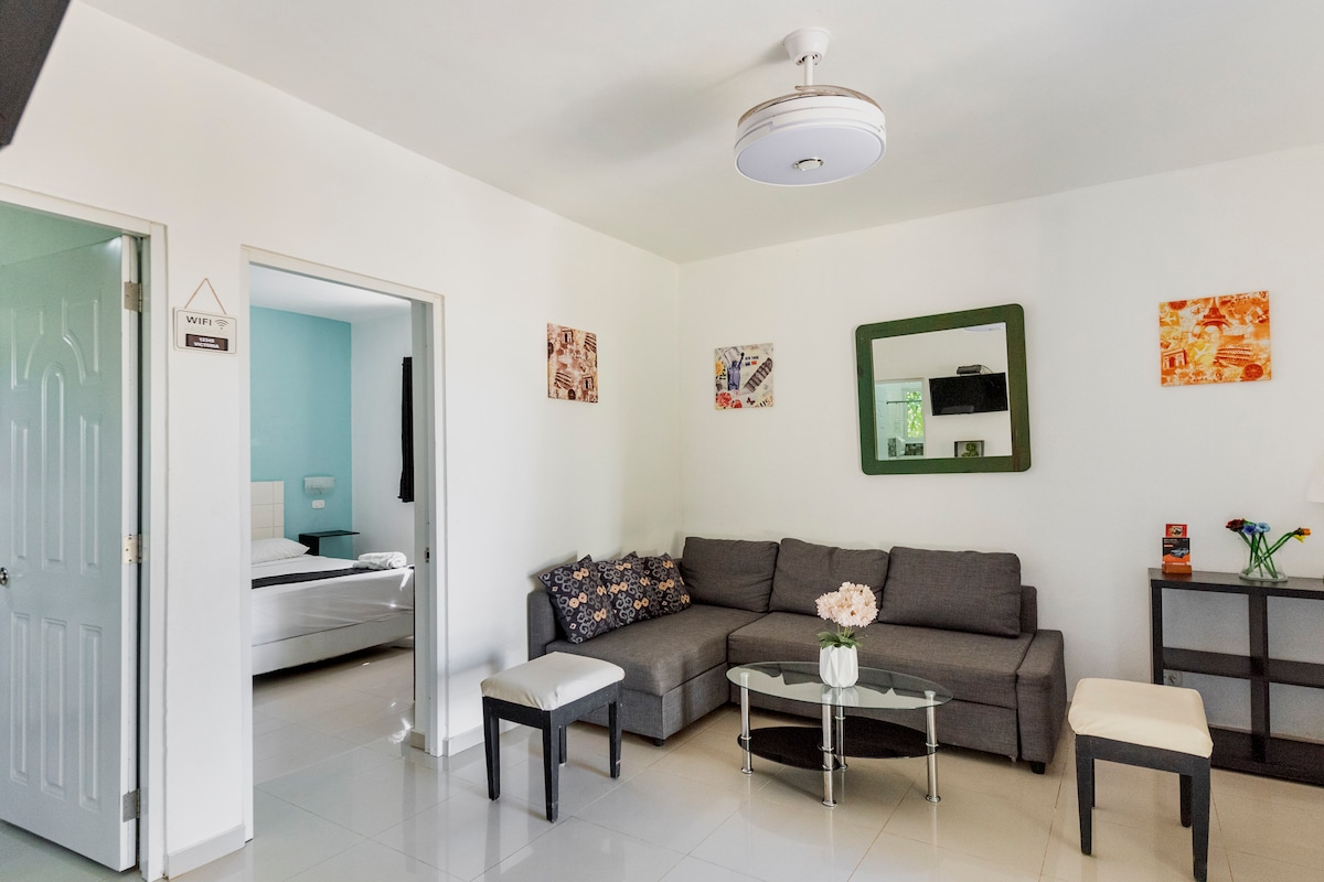 Discover Cabarete Beach Hideaway – a bright and stylish studio just a 2-minute walk from the beach. Enjoy fast WiFi, a fully equipped kitchen, pool access and a top location steps from kite schools, beach bars and shops. You can launch your kite directly at the beach access, making it ideal for kite surfers. Perfect base for sun, wind and true Caribbean vibes.