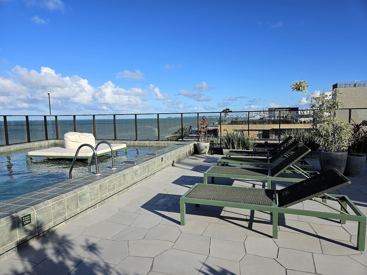 Vaše savršeno utočište u Žoao Pesoi! Na samo 3 minuta od plaže, naš moderni apartman nudi bazen sa panoramskim pogledom, opremljenu teretanu, udoban prostor za rad i brz Wi-Fi. Savršeno za one koji traže opuštanje, odmor ili rad na daljinu uz praktičnost. Povlašćena lokacija, u blizini pekara, pijaca, apoteka, barova i restorana. Super domaćin s ocjenom 5 za čistoću, komunikaciju i prijavu.