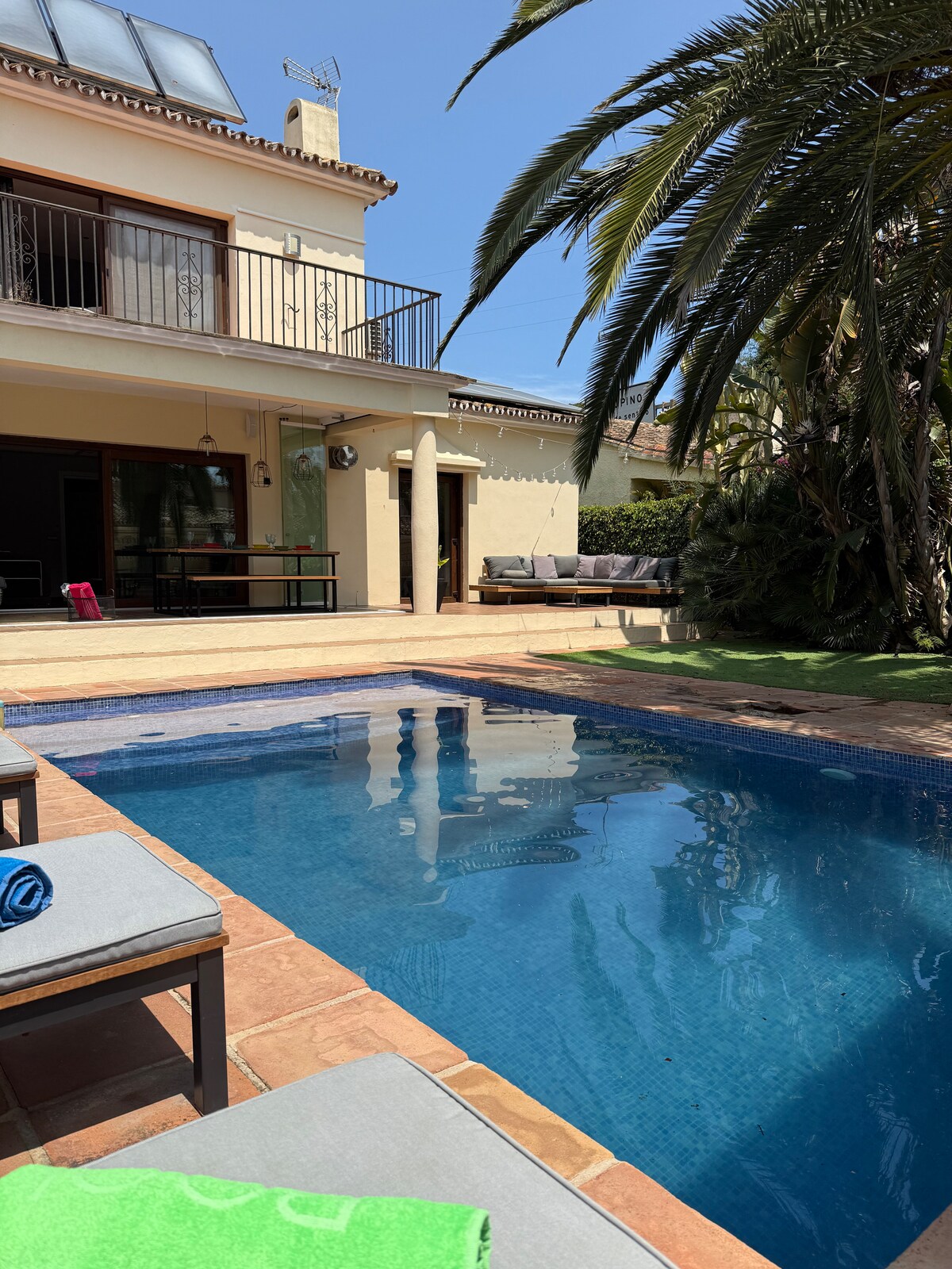 Dobro došli u El Limonar, zadivljujuću vilu s 3 spavaće sobe u Torreblanci, Fuengirola. Ovo luksuzno utočište ima pogled koji oduzima dah, privatni bazen i elegantan, moderan enterijer. Sa dvije spavaće sobe sa zasebnom kupaonicom, potpuno opremljenom kuhinjom i prostranim dnevnim boravkom okupanim prirodnim svjetlom, savršen je za opuštanje. Uživajte u večeri na otvorenom na terasi, na samo 5 minuta vožnje od plaža Fuengirole ili u kratkoj šetnji do željezničke stanice Toreblanka. Doživite eleganciju i praktičnost na Kosta del Solu.