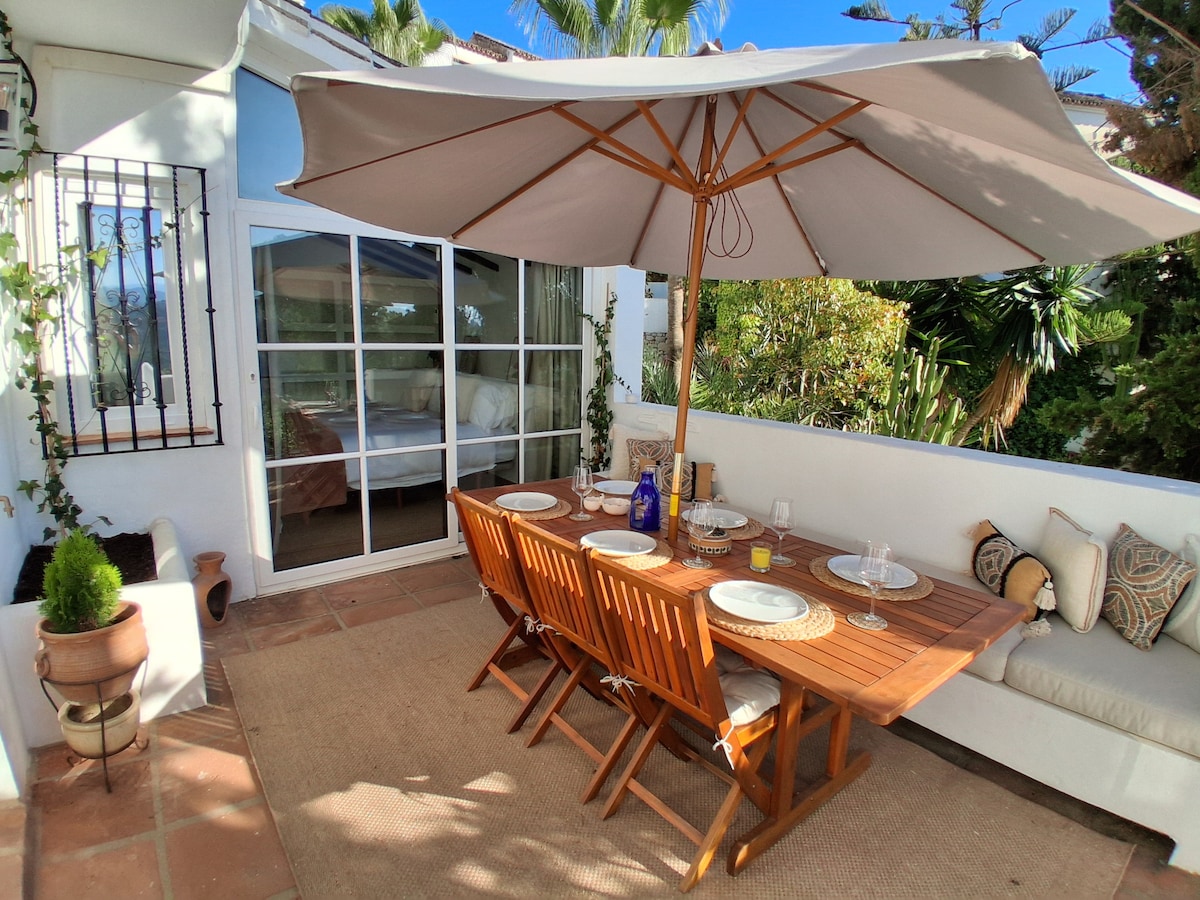 Wake up to uninterrupted golf-front views and morning sun on your private terrace - just minutes from Cabopino’s beaches and marina. Designed for families or small groups looking to relax and switch off, this spacious 3-bedroom home offers bright, open living and plenty of room to unwind. Recently renovated, it combines Andalusian charm with a clean, modern feel, set in a peaceful residential area with a communal pool, private entrance, and parking. Sleeps 6.