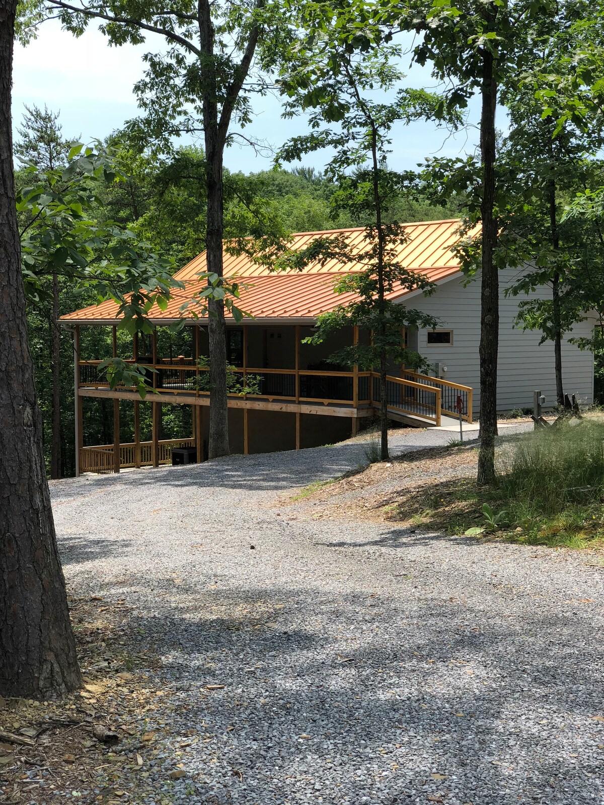 Slatki bungalov sa 2 spavaće sobe. Udoban, idealan za ljubitelje ili u mirnom prelijepom, pomalo rustikalnom okruženju za odmor. Petao ima 1 punu kadu. Dnevni boravak sa satelitskom televizijom, Netflix; kamin na drva, obezbeđeno drvo, potpuno opremljena kuhinja, trpezarijski sto, posteljina i starter papirni proizvodi namešteni. Velika terasa i trijem sa ekranom gledaju na planinu Kakapon. Masažna kada u glavnoj spavaćoj sobi na drveću, izgleda kao kućica na drvetu. Mnoga jutarnja magla se uzdižu od reke, udaljene pola milje dok vrana leti.