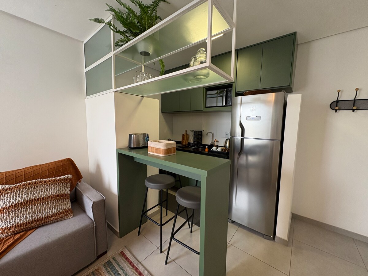 Potkrovlje sa 1 spavaćom sobom, savršeno za do 3 osobe i sa odličnom infrastrukturom, pogledajte: No Espaço – Zid spavaće sobe: stakleni prozor sa pogledom na horizont - Potpuno opremljena kuhinja - Apartman u kupatilu – Uključena je posteljina ili komplet posteljine i peškiri - Wi-Fi Spoljašnji prostor – Parking je uključen, besplatan – Sjeverna zona centra grada – U istom bloku imamo pristup lokalnoj trgovini 5 apoteka 3 supermarketa 3 restorana 2 Lanchonetes 2 teretane na suprotnim uglovima 1 Pekara na uglu